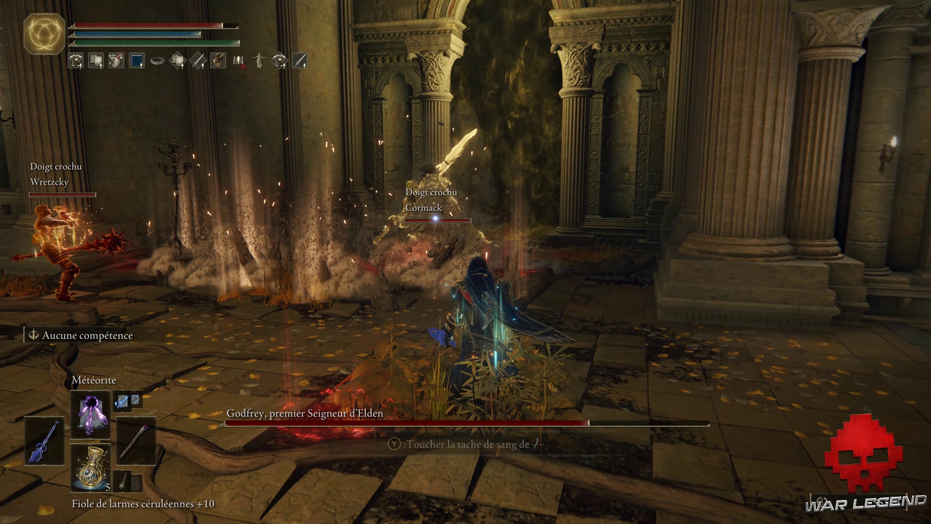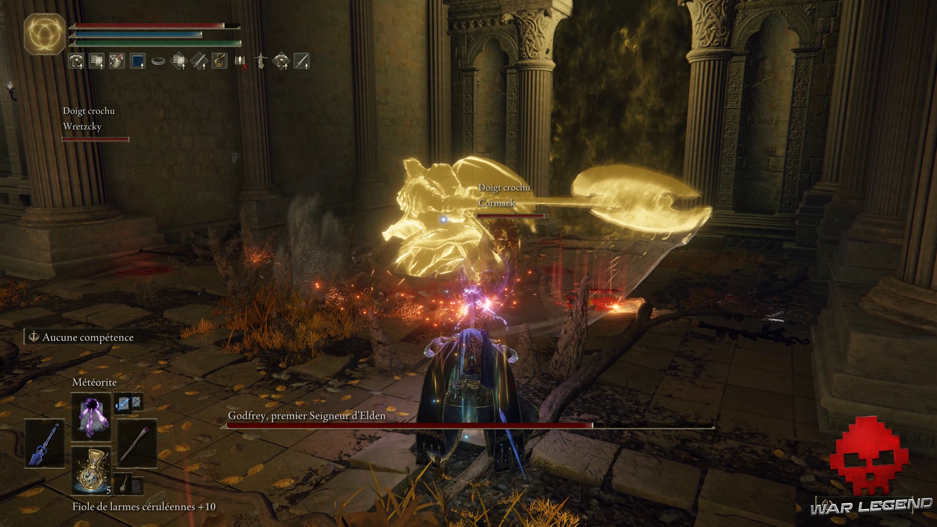 Arrivé au bout, vous voilà dans une grande salle. Il est temps d’affronter Godfrey, le premier Seigneur d’Elden.
