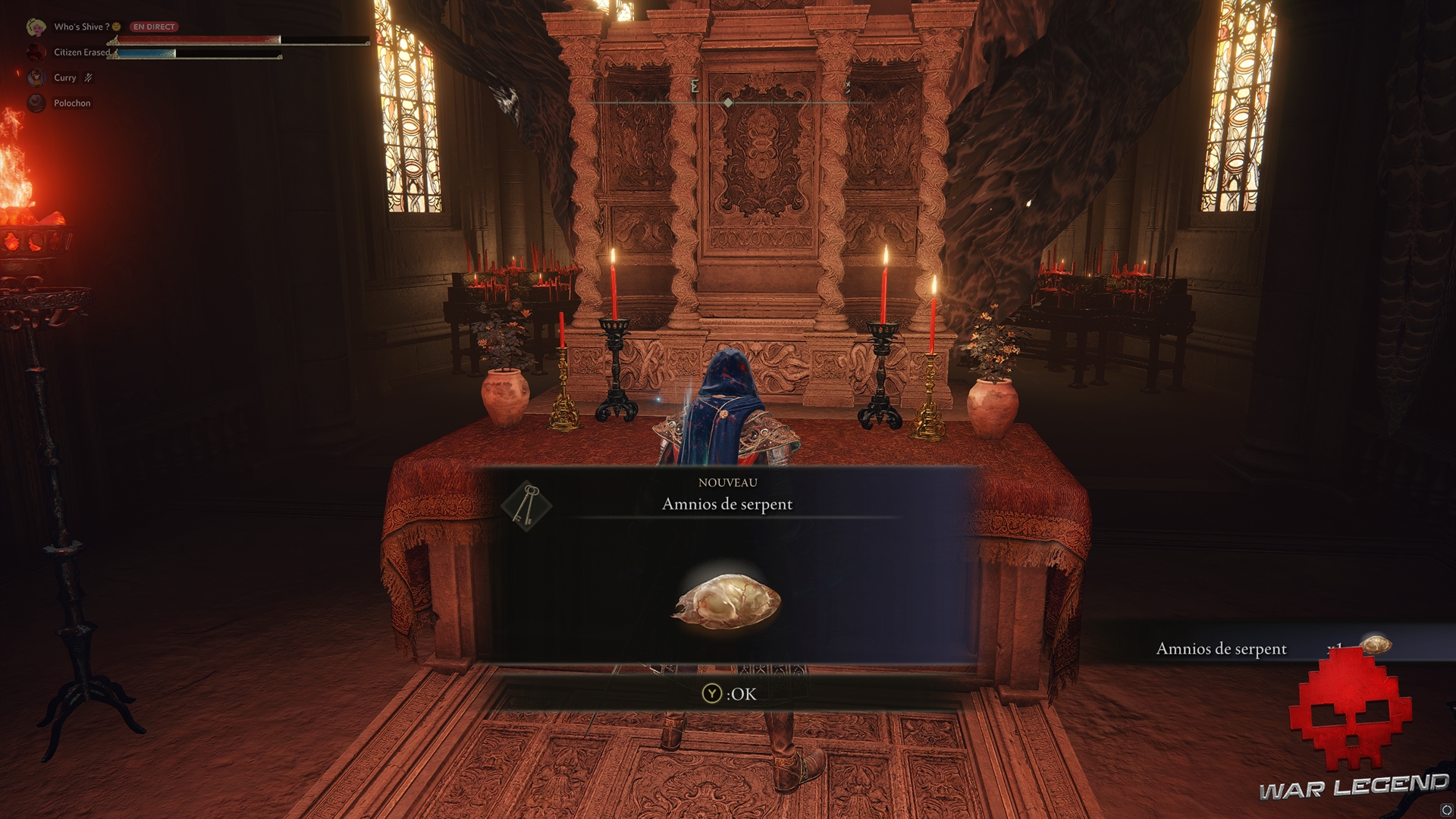 Une fois le boss défait, vous pouvez ramasser l’Amnios de Serpent sur l’autel.