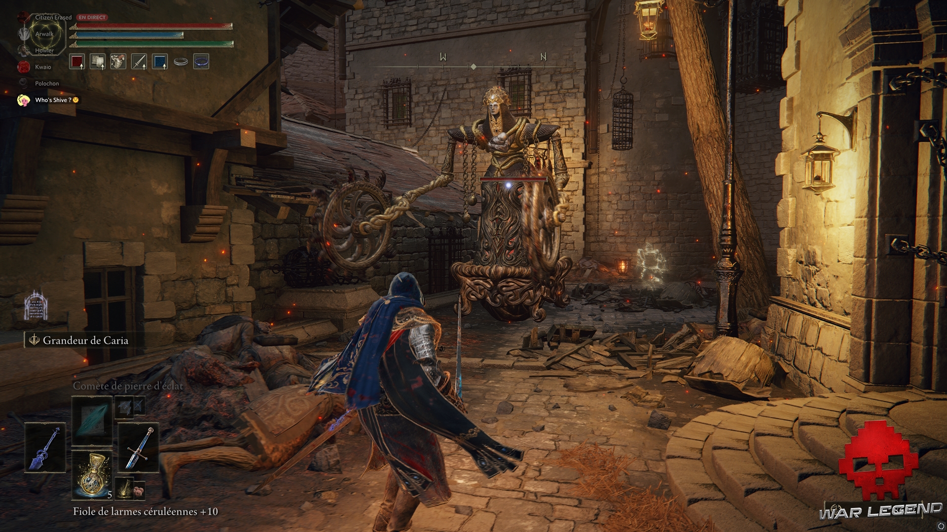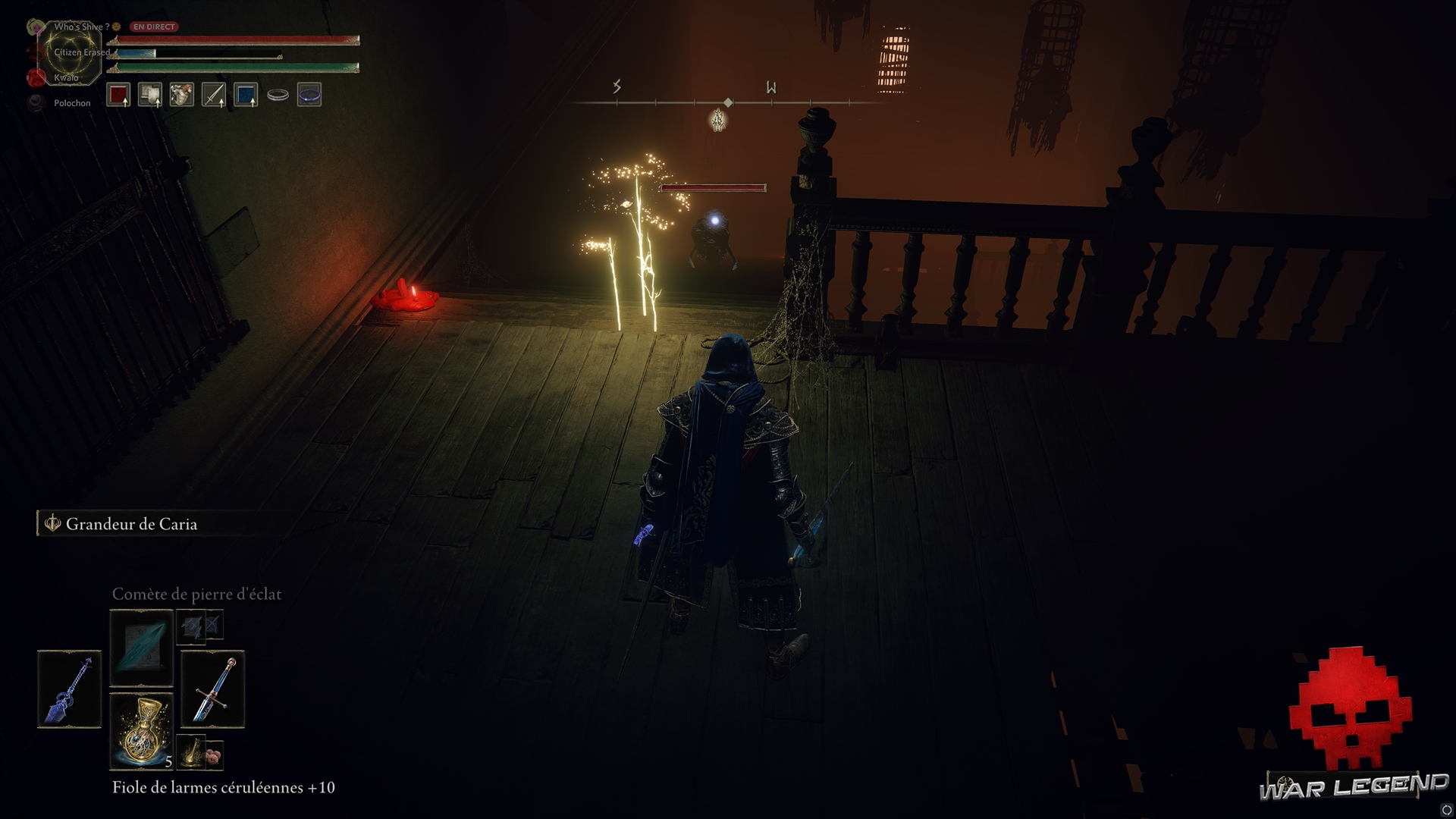 À partir de là, les couloirs du manoir vous seront désormais accessibles. Si vous montez à l’étage, vous serez envahi par l’Inquisiteur Ghiza, ce qui constitue l’occasion de mettre la main sur une arme unique à l’attaque spéciale assez fun : le Rouet de Ghiza.