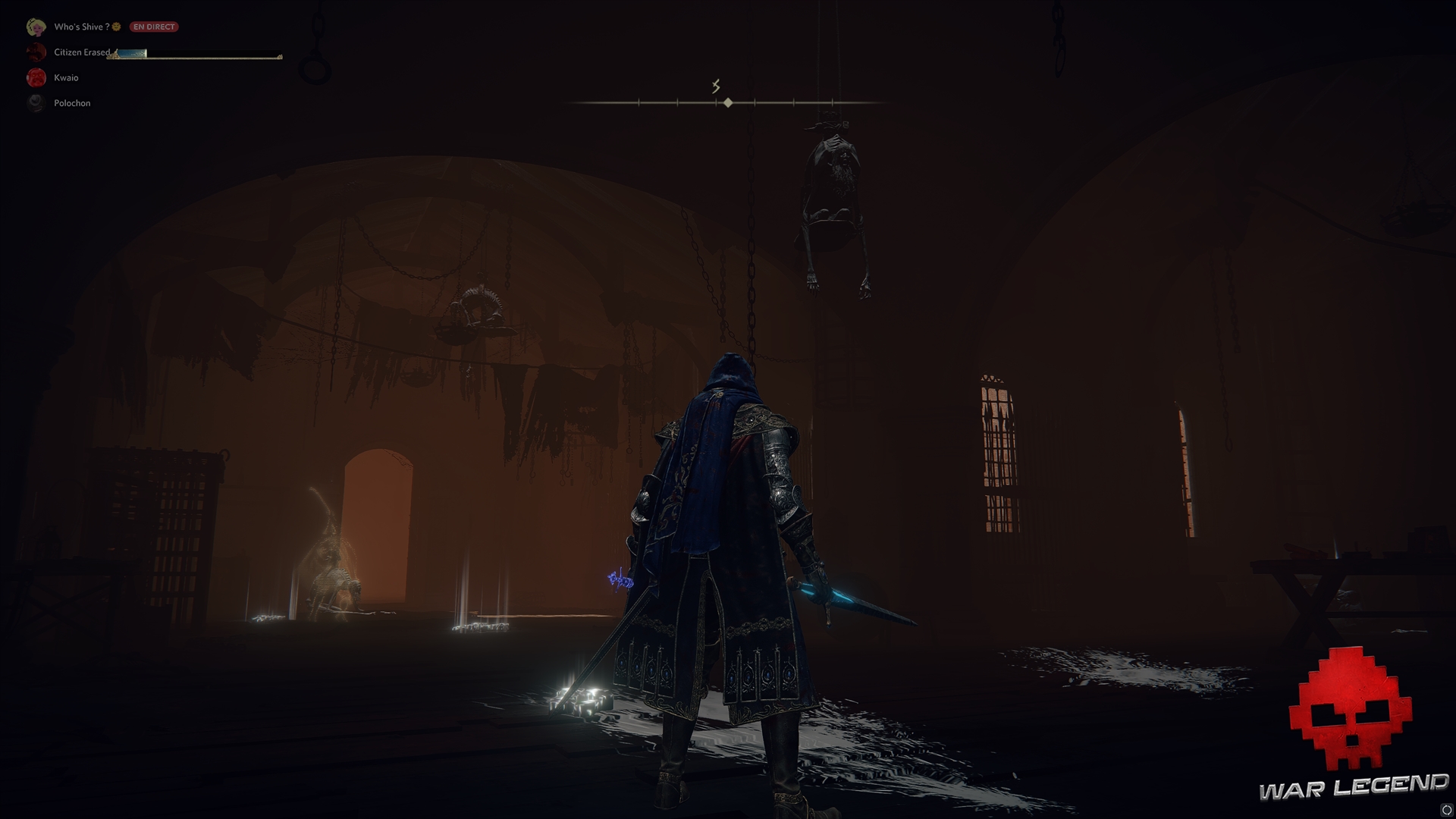 Après la salle du trône, vous pourrez utiliser une Clé-lame de pierre pour tomber dans une gigantesque pièce carcérale : laissez-vous tomber directement à droite pour pouvoir descendre jusqu’en bas de la pièce sans trop d’encombres, notamment en sautant sur les cages.