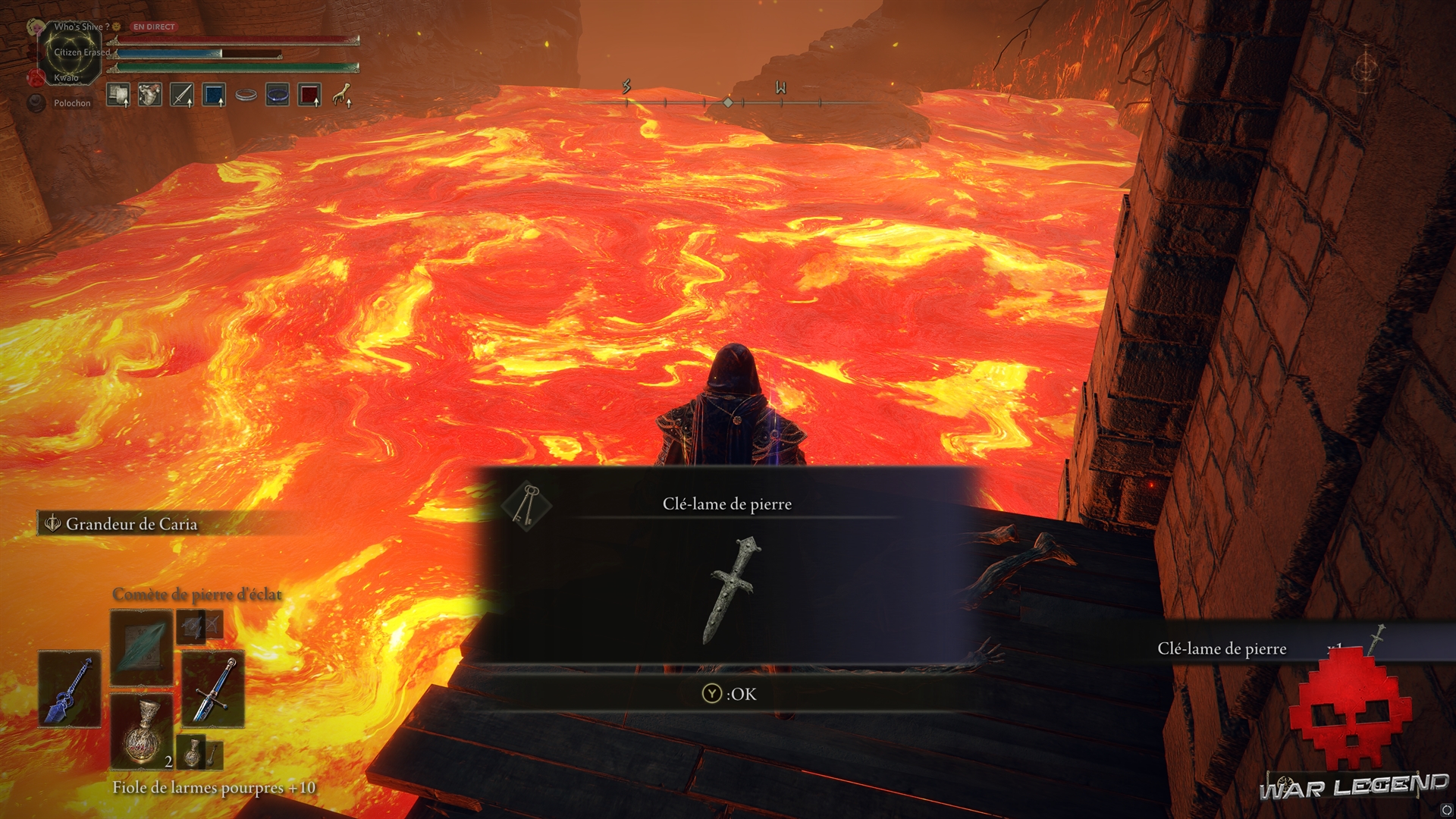 Une petite entrée vous permet de descendre plus profondément dans le volcan, au niveau de la lave. Il y a plusieurs objets à récupérer, comme le Bouclier de lave, mais n’oubliez par de récupérer la Clé-lame en sautant sur la plateforme suspendue aux murailles. Plutôt utile si vous n’en aviez pas pour le mur de brume croisé plus tôt.