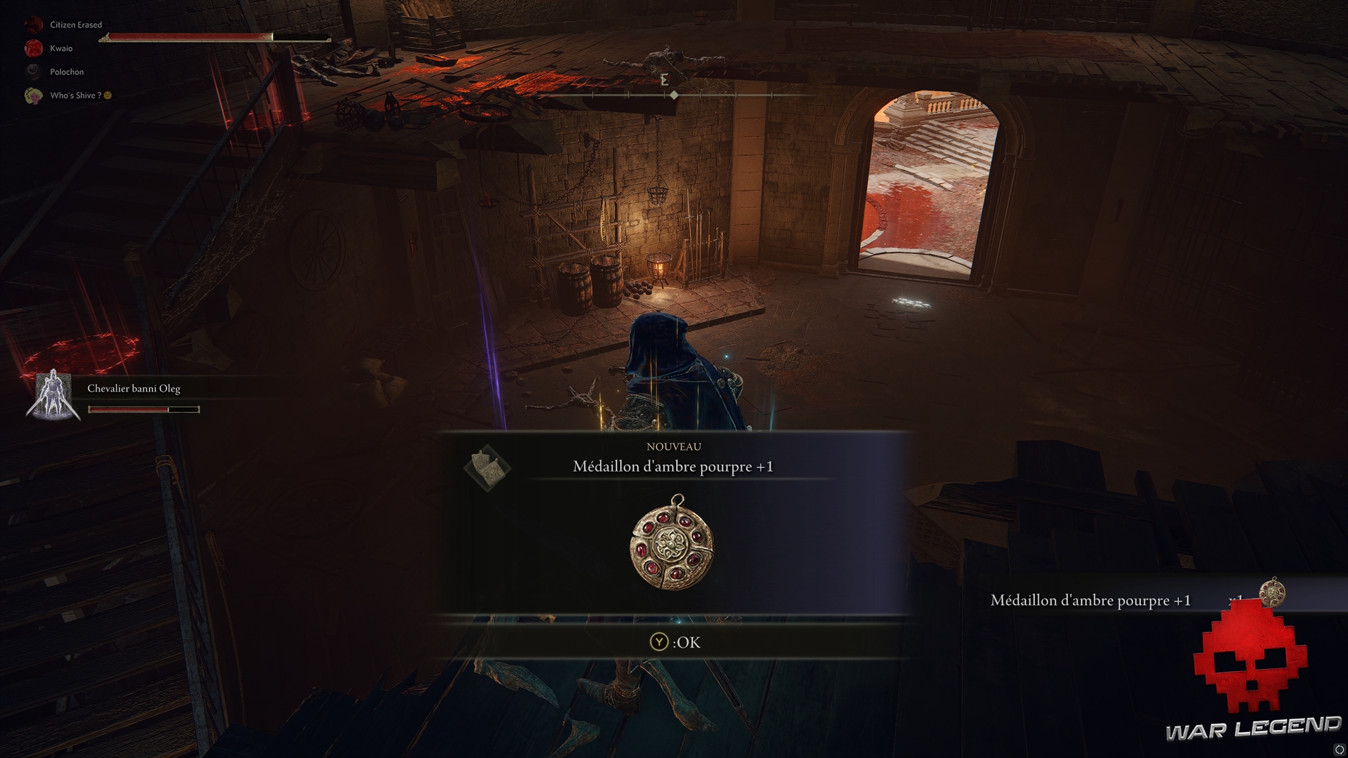 Plus loin, vous aurez la possibilité d’utiliser une clé-lame sur un mur de brume pour récupérer un Médaillon d’ambre pourpre +1.