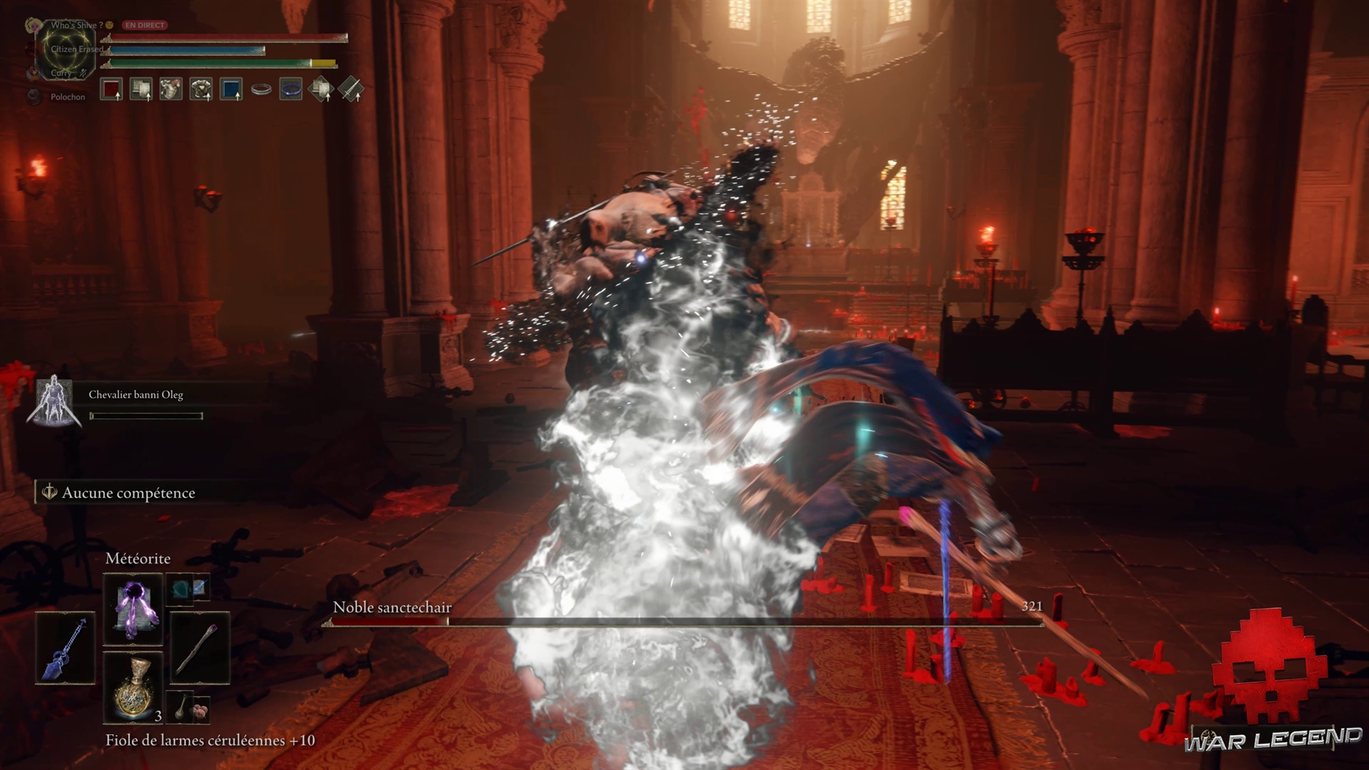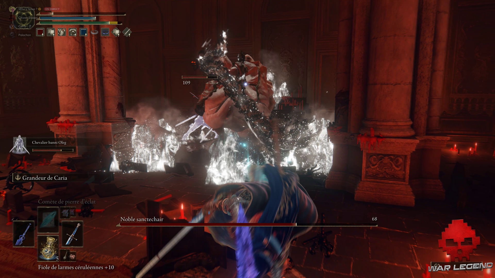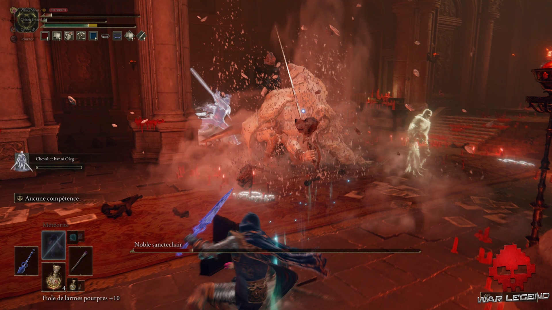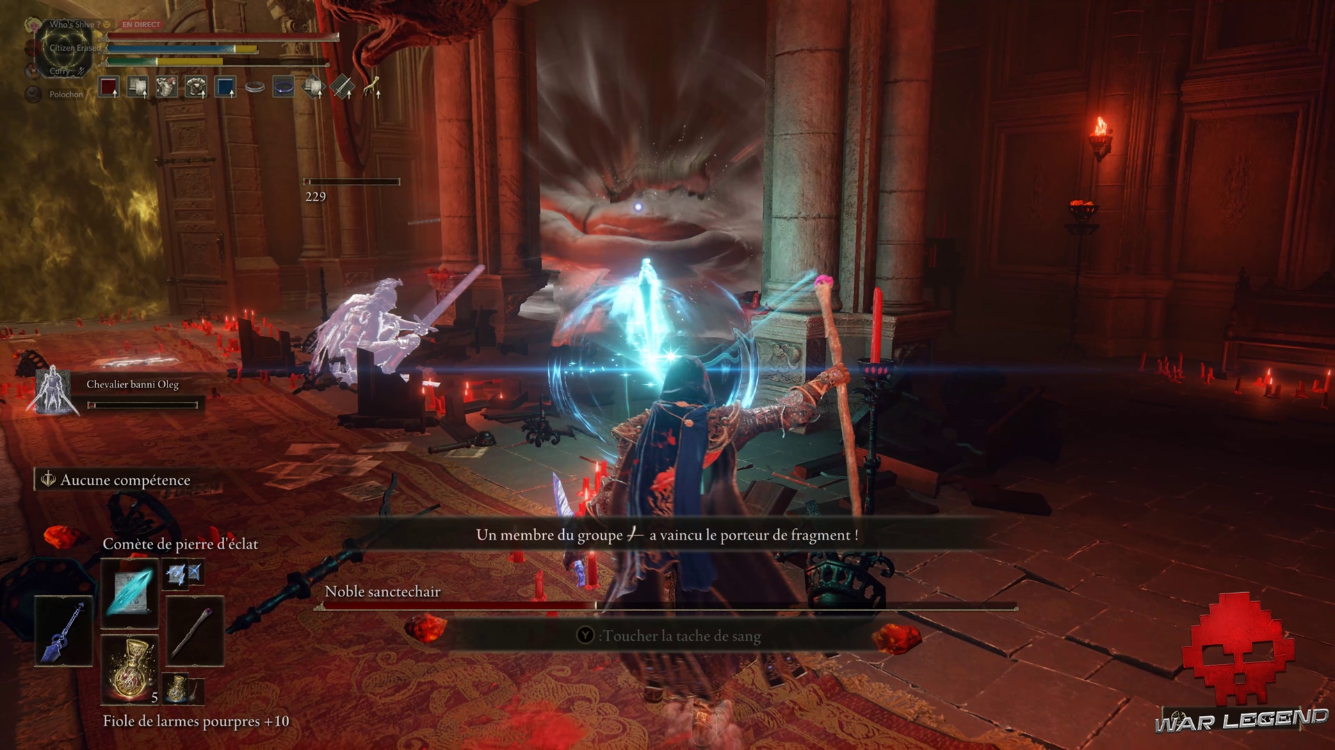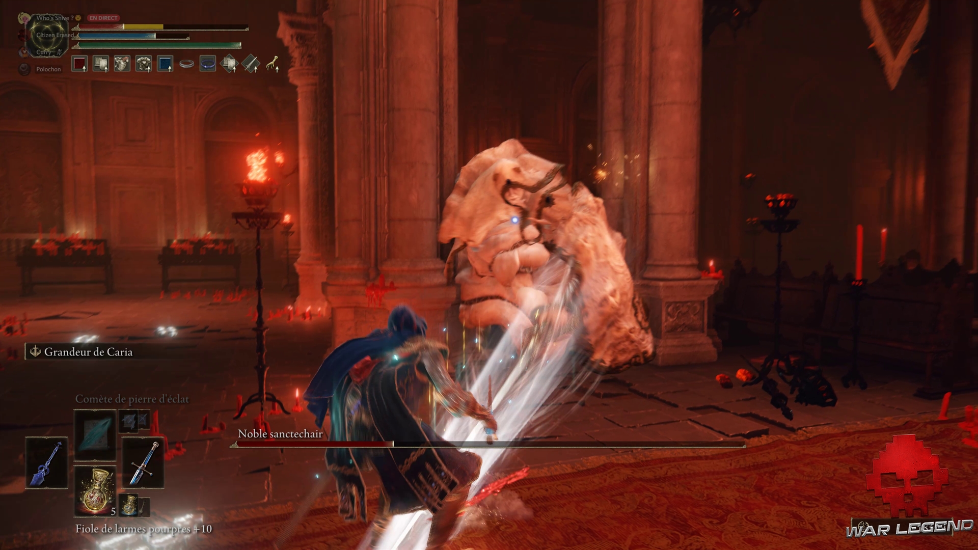 Le Noble Sanctechair propose un combat particulièrement ardu, surtout si vous êtes orienté exclusivement au corps-à-corps. Si vous êtes adepte de la sorcellerie, n’hésitez pas à invoquer un esprit solide pour détourner le boss pendant que vous le bombardez de sorts.