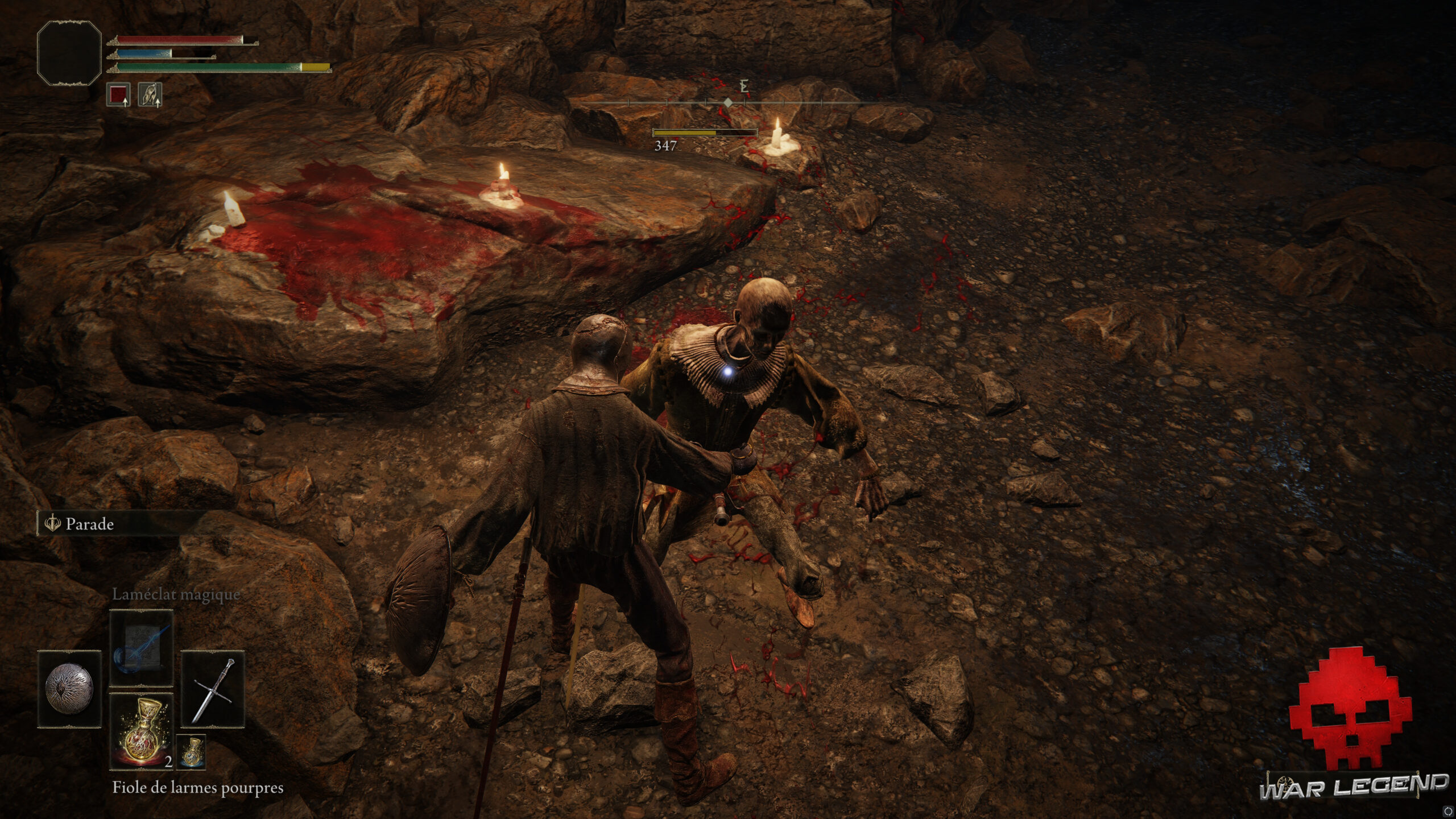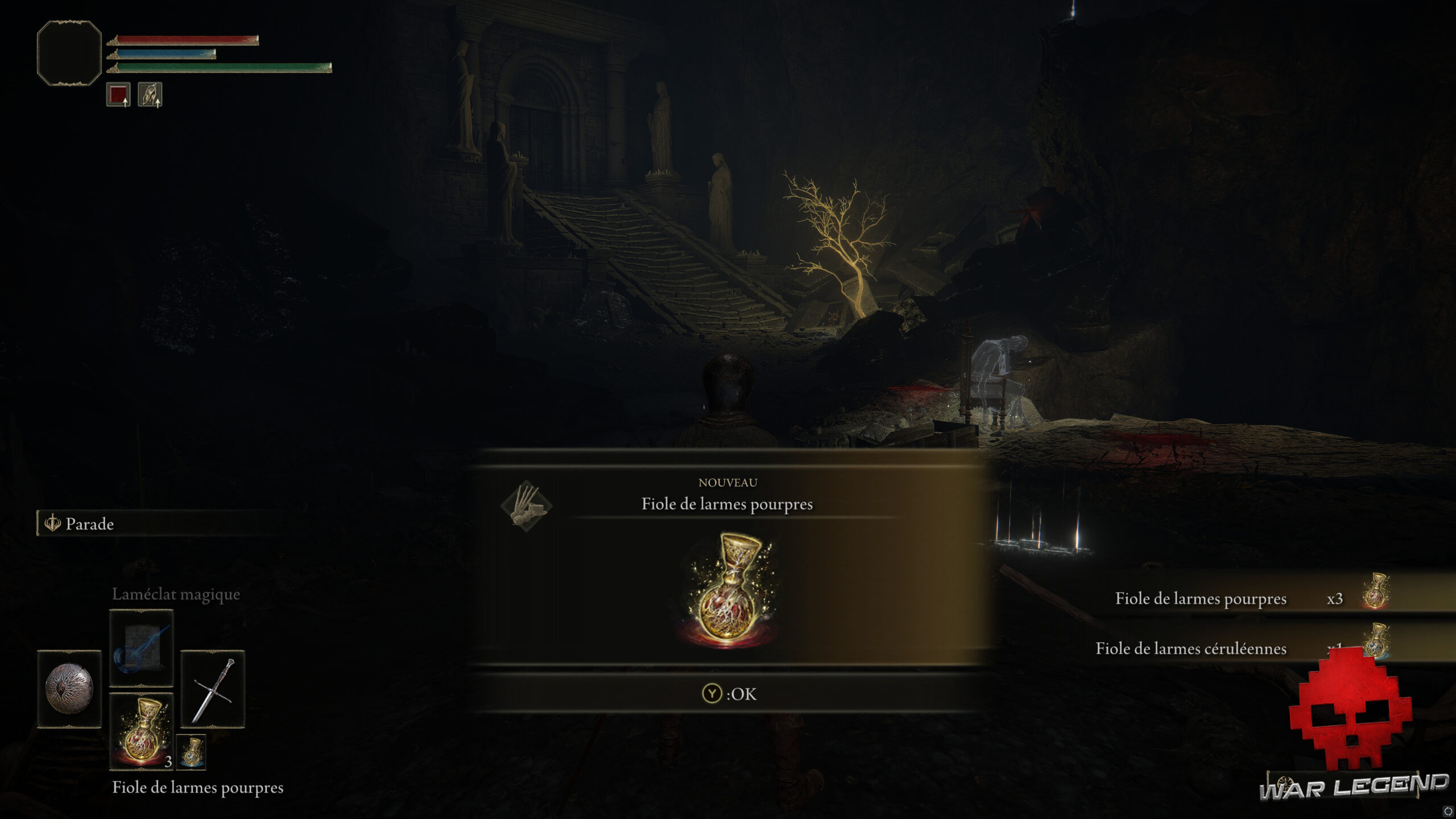 En progressant, vous tombez sur l’objet le plus important de votre quête : la Fiole de larmes pourpres. Ne passez surtout pas à côté.