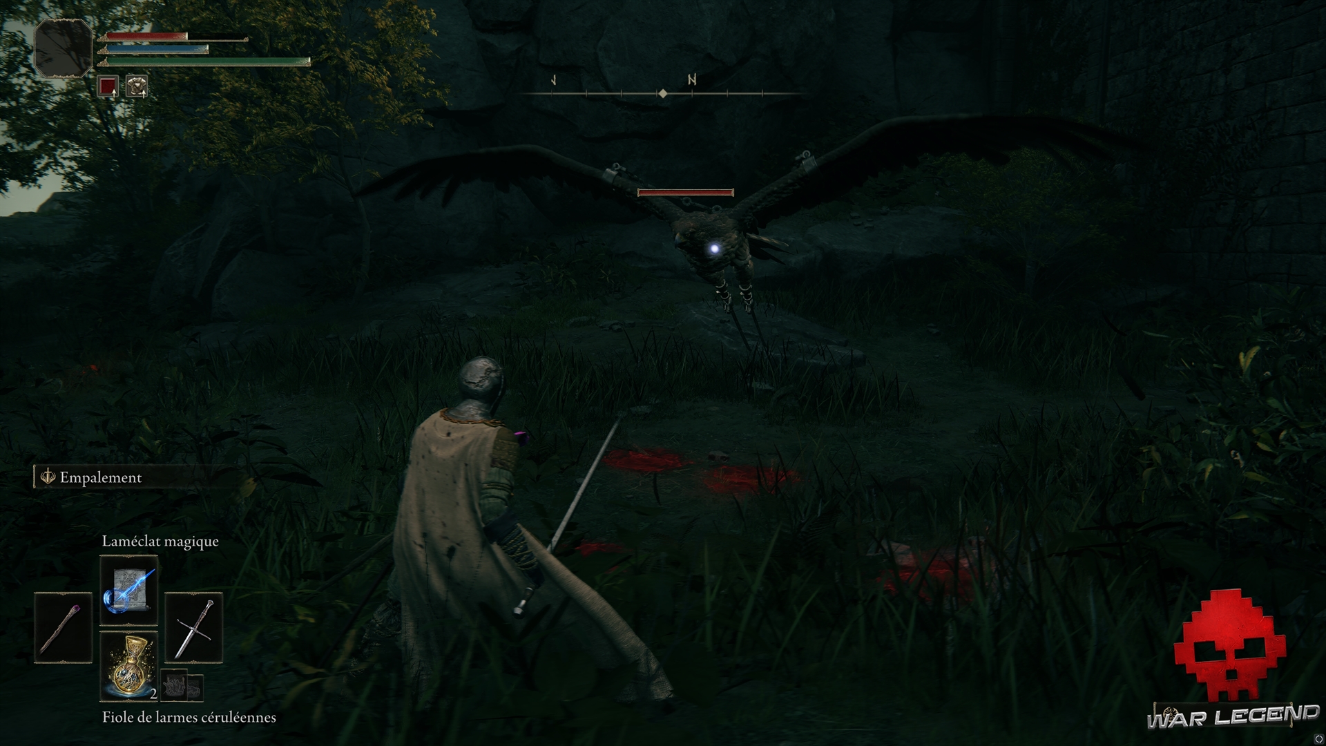 Continuez sur la falaise pour tomber sur un aigle à ne pas sous-estimer. Un site de grâce se trouve un peu plus loin, mais vous pouvez continuer à descendre et faire le tour d’un rocher pour récupérer 10 carreaux et une Pierre de forge solide. Mais attention aux deux aigles qui sont sur votre chemin.