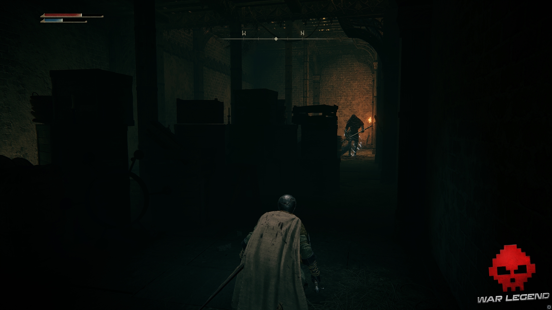 En haut, un chevalier avec une hallebarde patrouille, alors soyez prudent et profitez de l’occasion pour un bon backstab. Passez une porte non loin pour trouver un nouveau site de grâce.