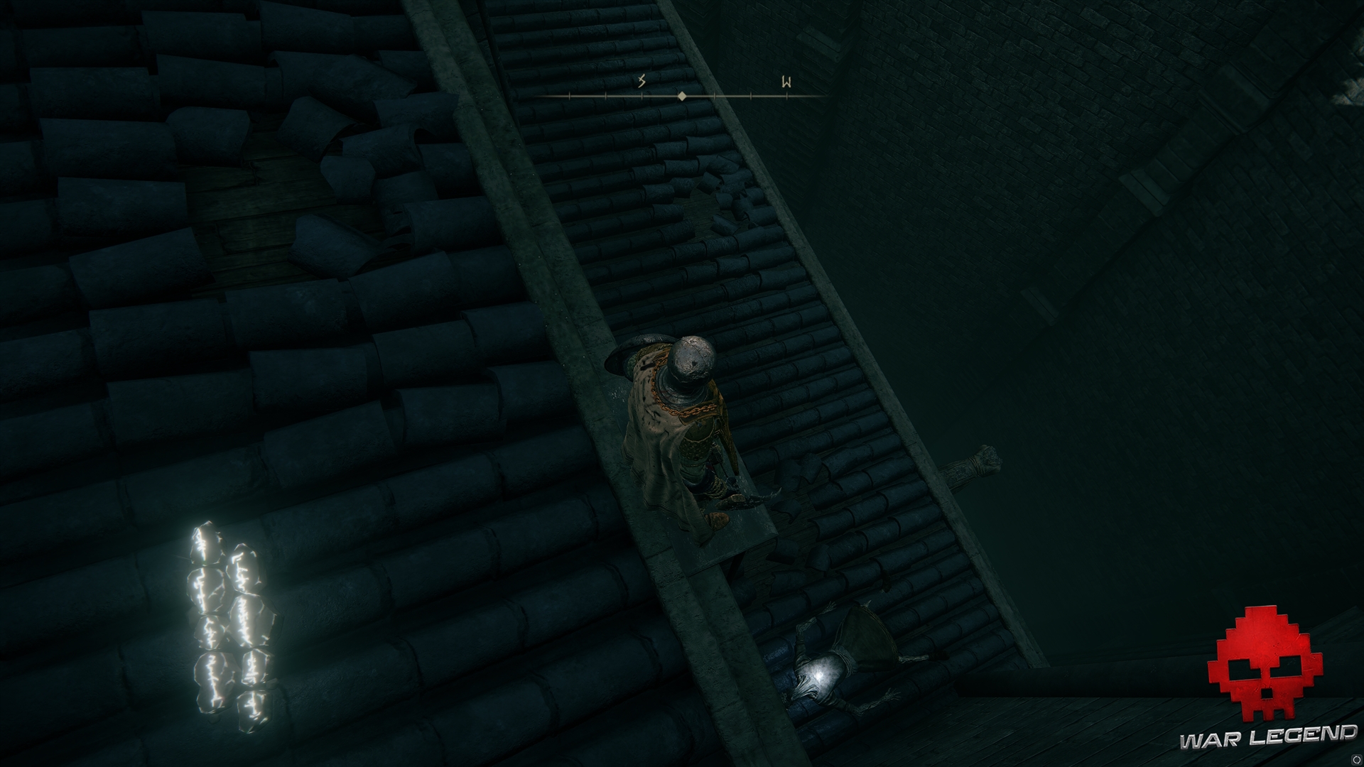 Sous le clocher, tournez à droite et tombez sur la toiture encore à droite pour récupérer un objet sur un cadavre. Vous pouvez ensuite passer par la fenêtre pour rentrer dans la chapelle.