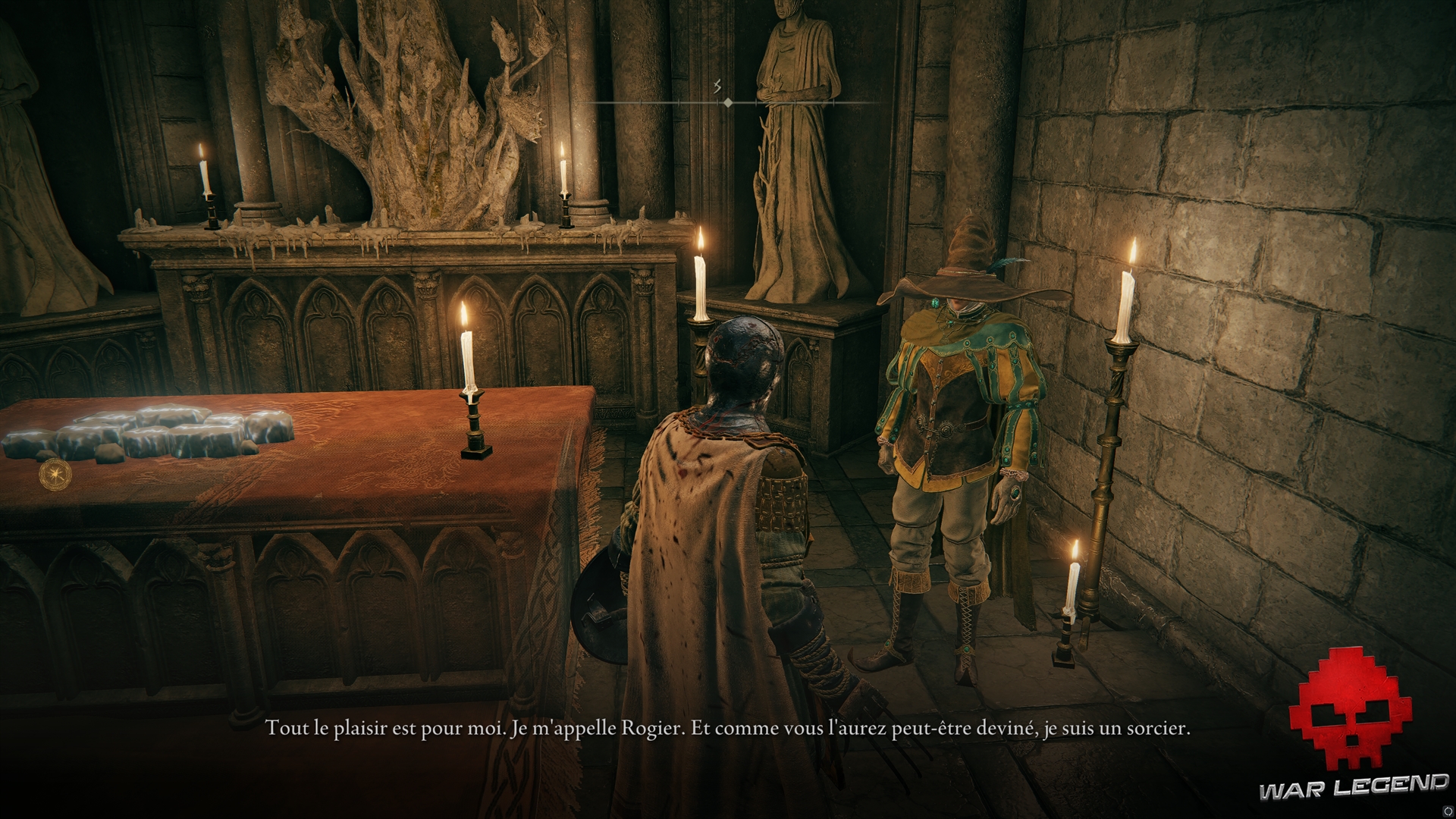 Vous faites alors la rencontre de Rogier le Sorcier, prêt à vous enseigner des Cendres de guerre aux dégâts magiques.