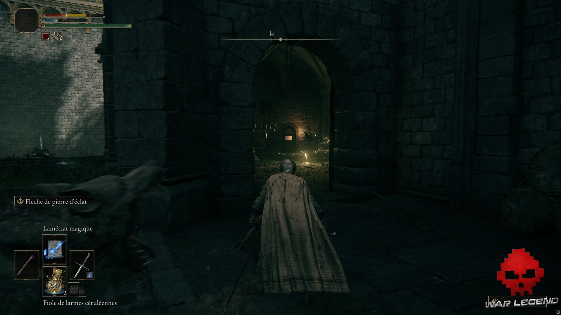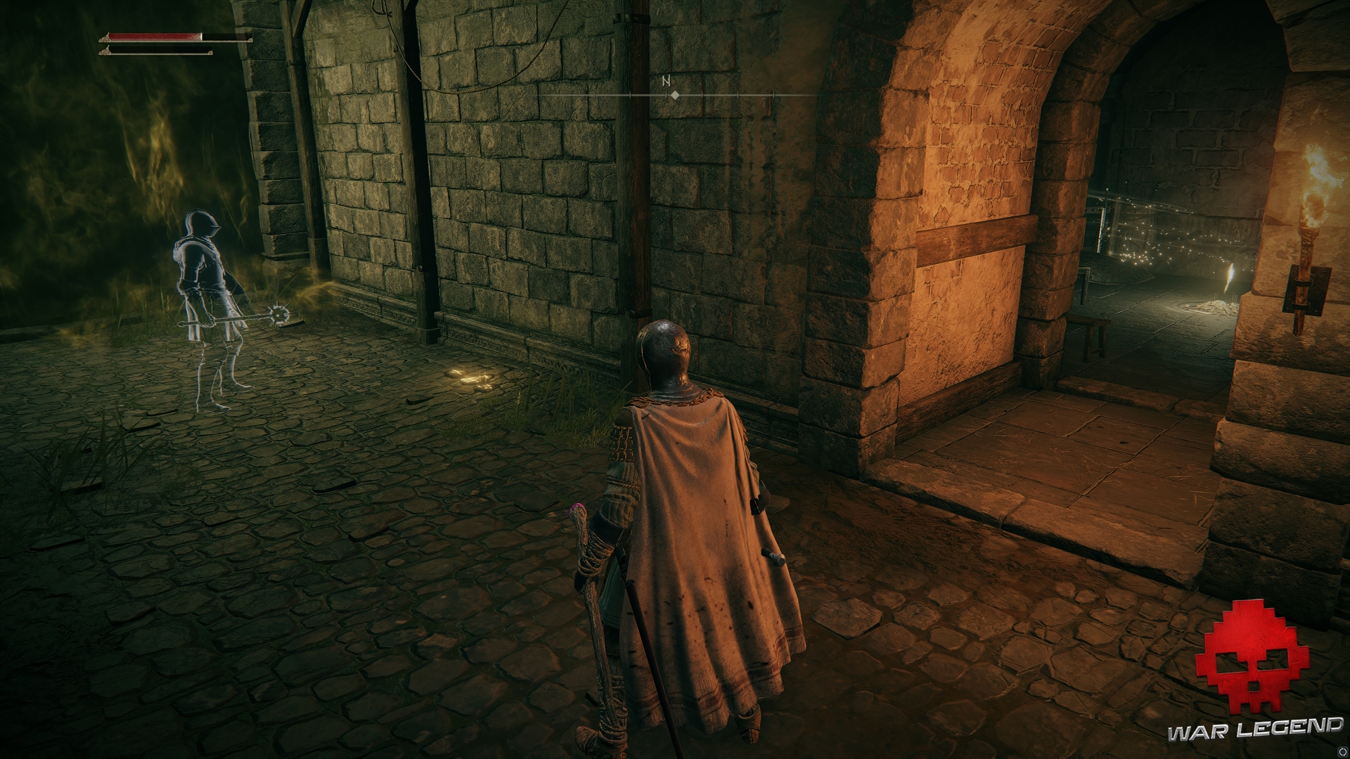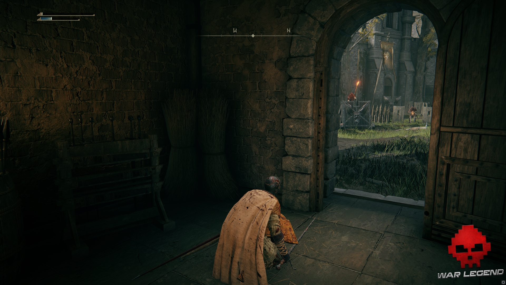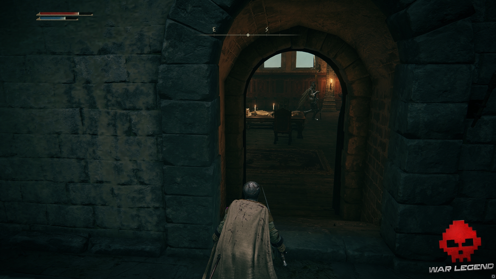 Sortez de la chapelle et continuez vers le sud. Attention au garde et au chevalier qui patrouillent. Comme d’habitude, une approche furtive peut faire des merveilles pour se débarrasser des gêneurs en déployant le moins d’effort possible.