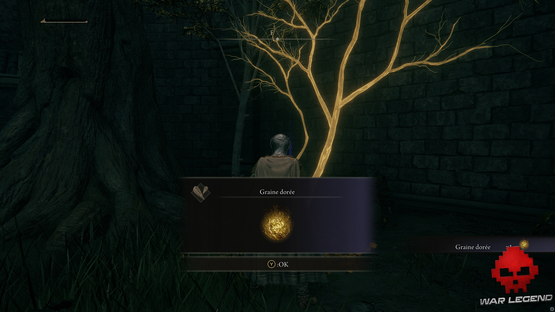 Au fond du chemin à droite, vous tomberez sur une Graine dorée qui vous permet d’augmenter le nombre d’utilisations de vos Fioles, ainsi que sur une PNJ : Nepheli Loux. Parlez-lui afin qu’elle vous prête main-forte durant le combat de boss qui s’annonce bientôt.