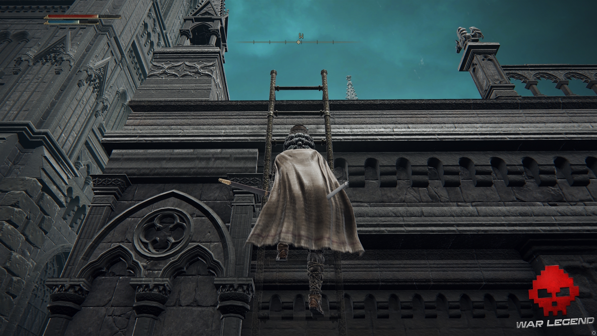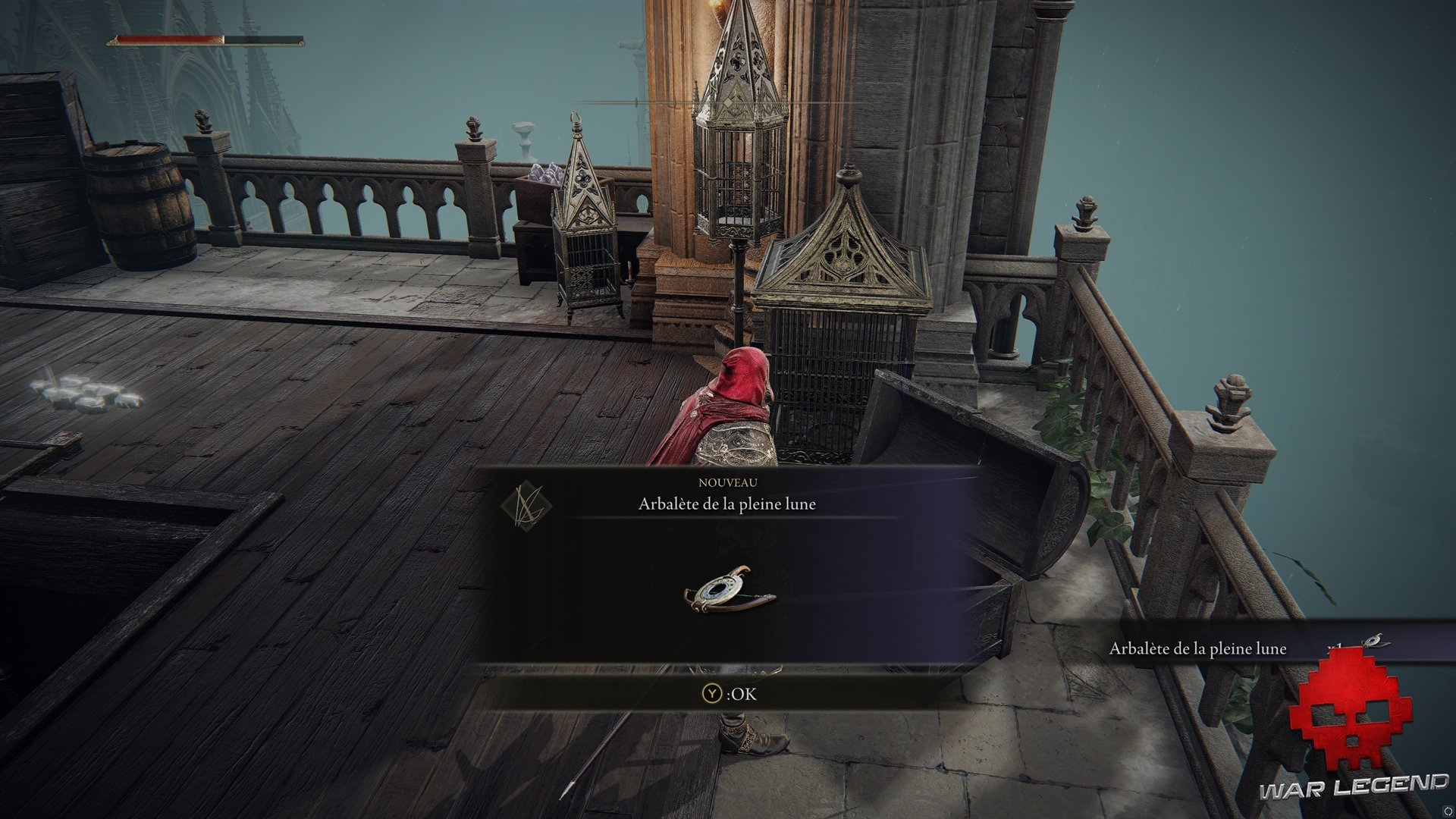 Vous devriez finir par voir un accès avec une longue échelle au centre d’une pièce. Deux pantins protège cette dernière, mais vous pourrez ainsi récupérer l’Arbalète de la pleine lune.