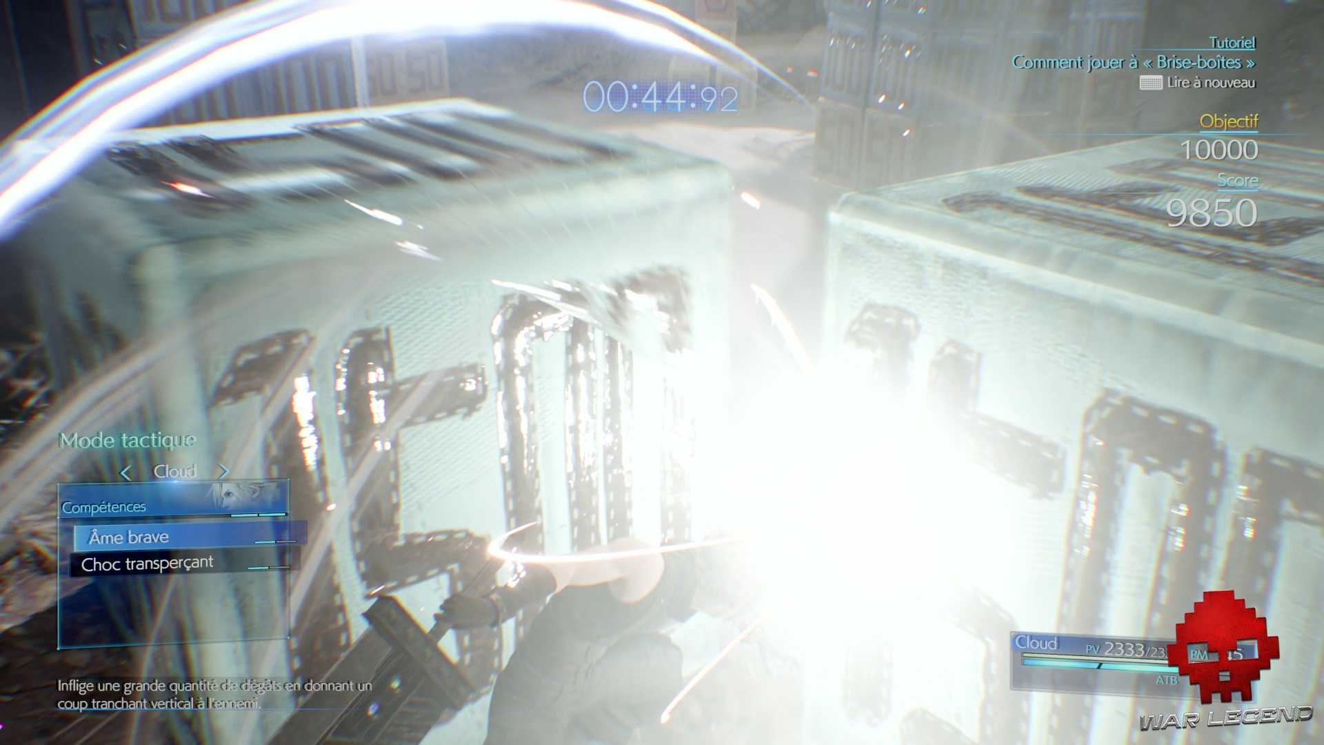- N’hésitez pas à utiliser Âme brave sur les grosses caisses pour les casser plus vite, mais ignorez celles qui ne bloquent pas votre chemin