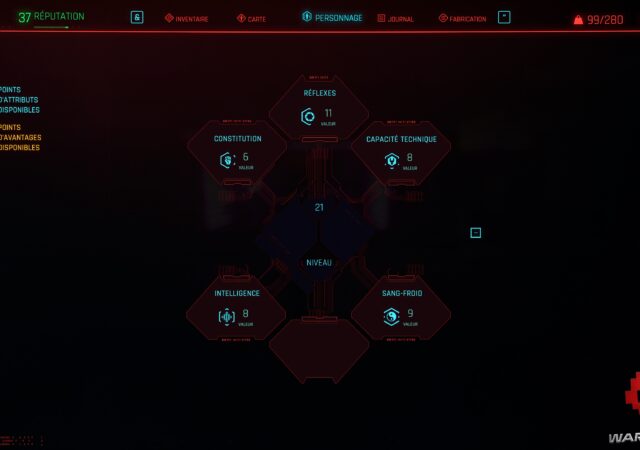 Table rase Cyberpunk 2077 offre une grande liberté de personnalisation de son personnage, mais comme dans la vraie vie, ses expériences déterminent qui nous sommes. Toutefois, les avancées en cybernétique permettent de tricher un peu. Les points d'attributs (constitution, réflexes,…