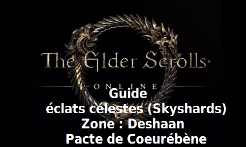 Guide Éclats Célestes Plaines de Deshaan du Pacte de Coeurébène Avec ce guide vous allez pouvoir trouver tous les Éclats célestes (Skyshards) de la zone 15 à 23 du Pacte de Coeurébène. Pour avoir des indications sur les emplacements des…