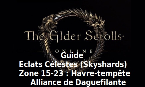 Guide Eclats Célestes Havre-tempête – Alliance de Daguefilante Avec ce guide vous allez pouvoir trouver tous les Éclats célestes (Skyshards) de la zone 15 à 23 de l’Alliance de Daguefilante. Pour avoir des indications sur les emplacements des Éclats célestes,…