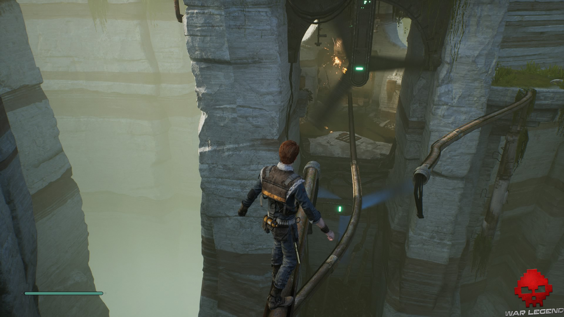 Utilisez votre pouvoir de Jedi pour ralentir l’hélice et pénétrer dans le bâtiment. Une fois en bas, utilisez une nouvelle fois votre pouvoir afin d’atteindre et récupérer votre première essence de force.