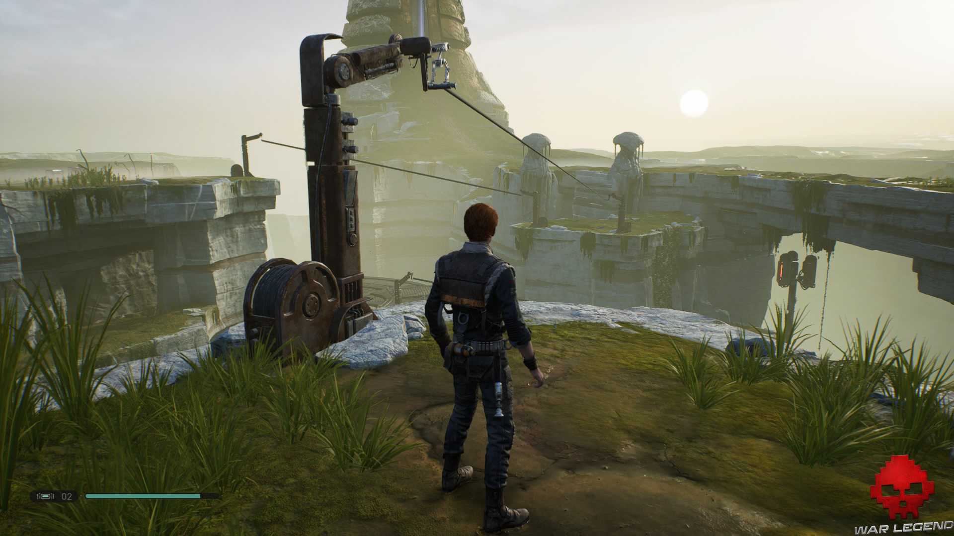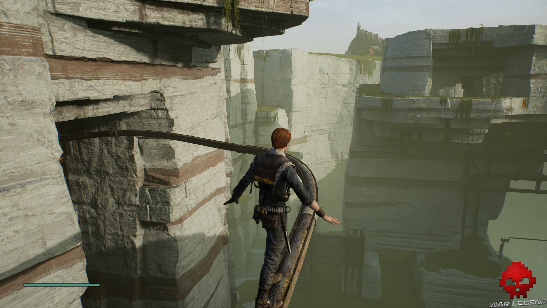 Une fois en haut, dirigez-vous vers la tyrolienne tout au bout — en prenant soin d’éviter les trous — afin de rejoindre rapidement le vaisseau.