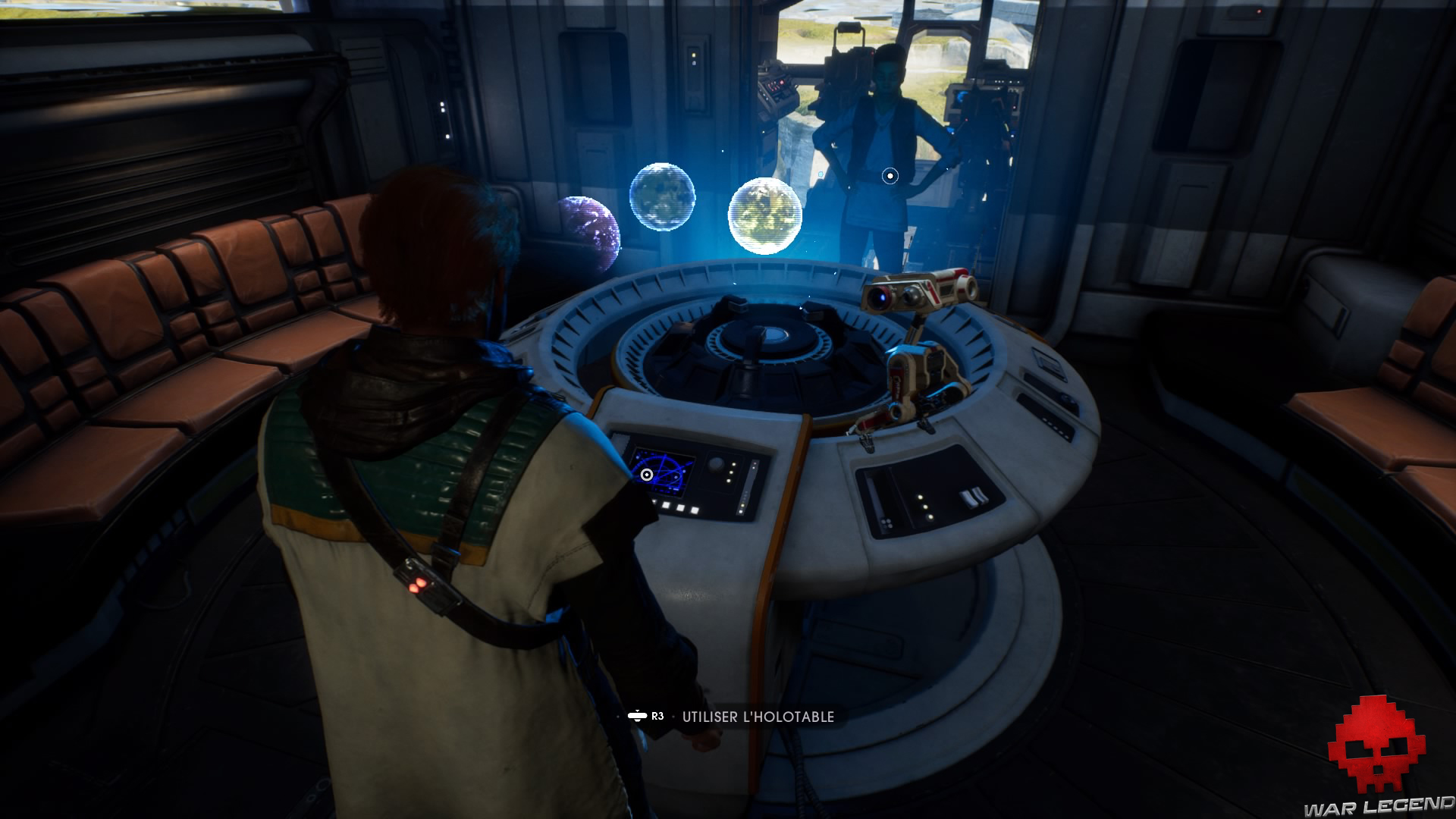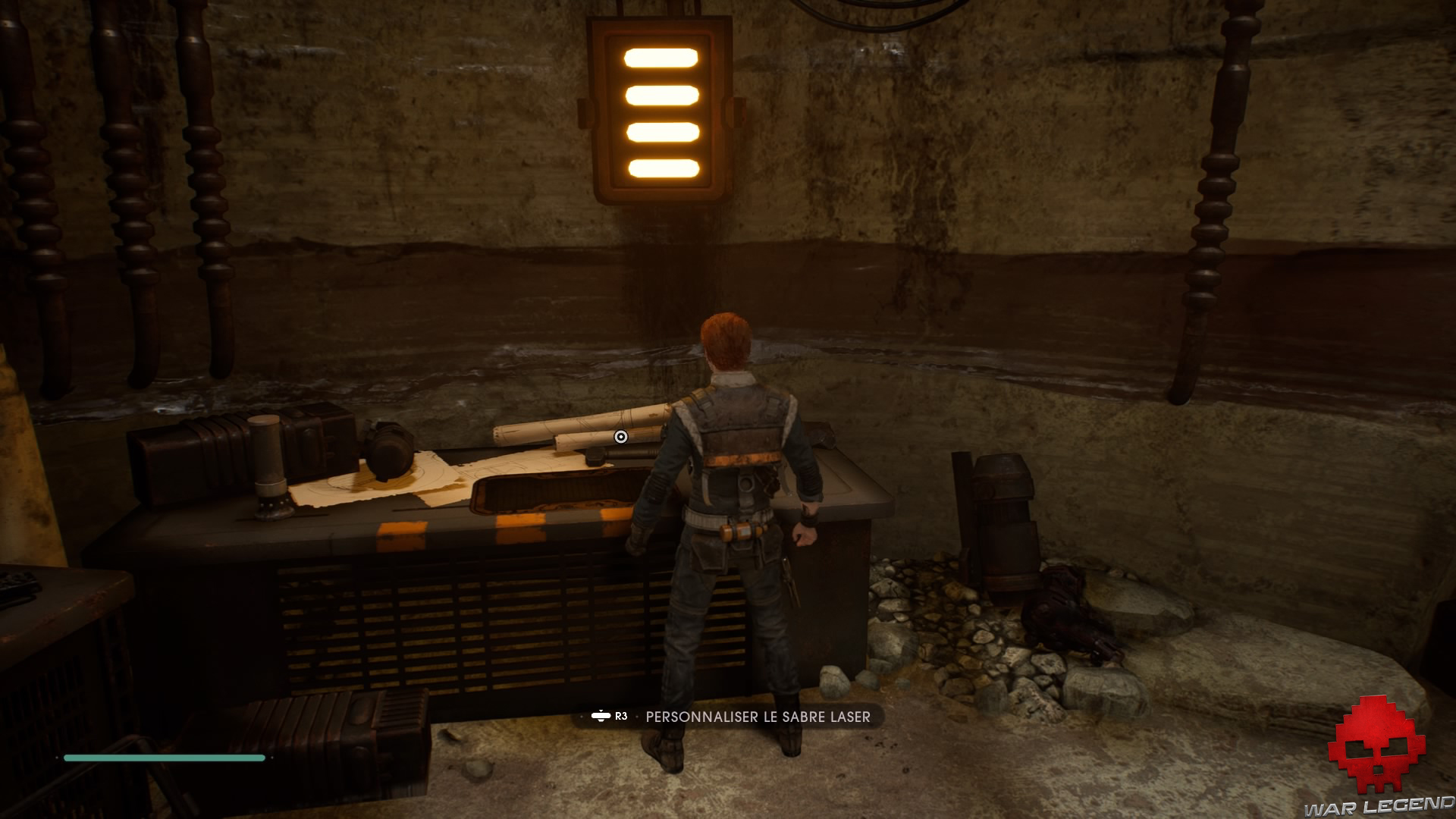 Une cinématique se lance alors dans laquelle vous réparez la patte défectueuse du petit droïde. Vous débloquez également un établi permettant de personnaliser votre sabre laser.