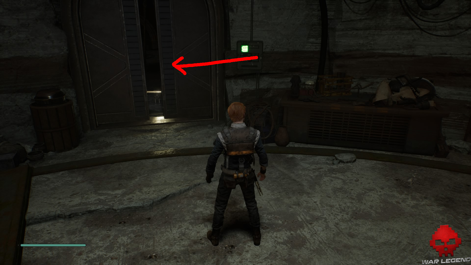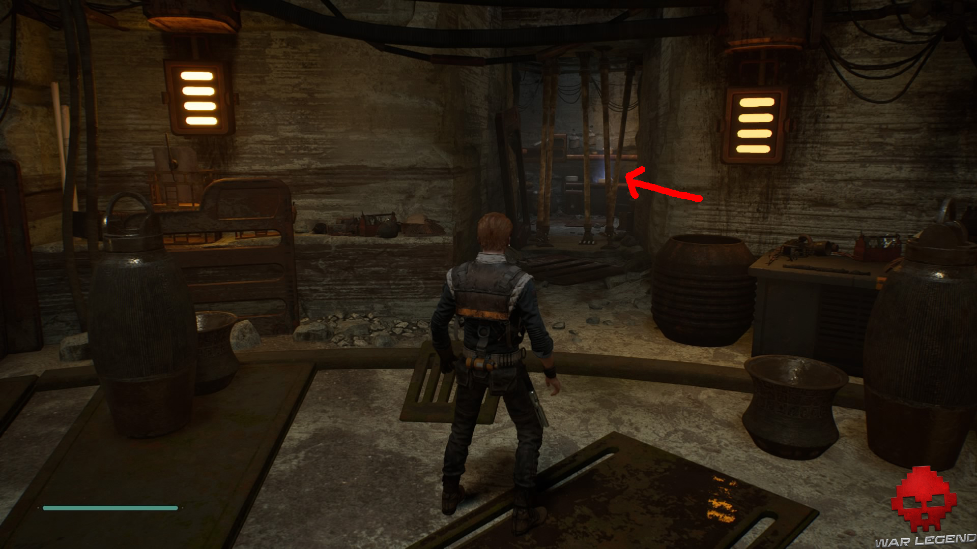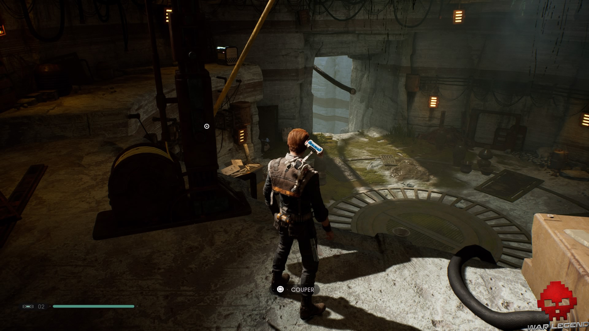 Arrivée devant l’immense fossile, laissez-vous tomber sur la gauche, puis ouvrez la porte afin de débloquer un raccourci vers l’atelier abandonné (vous débloquerez au passage l’accès à la planète Dathomir).