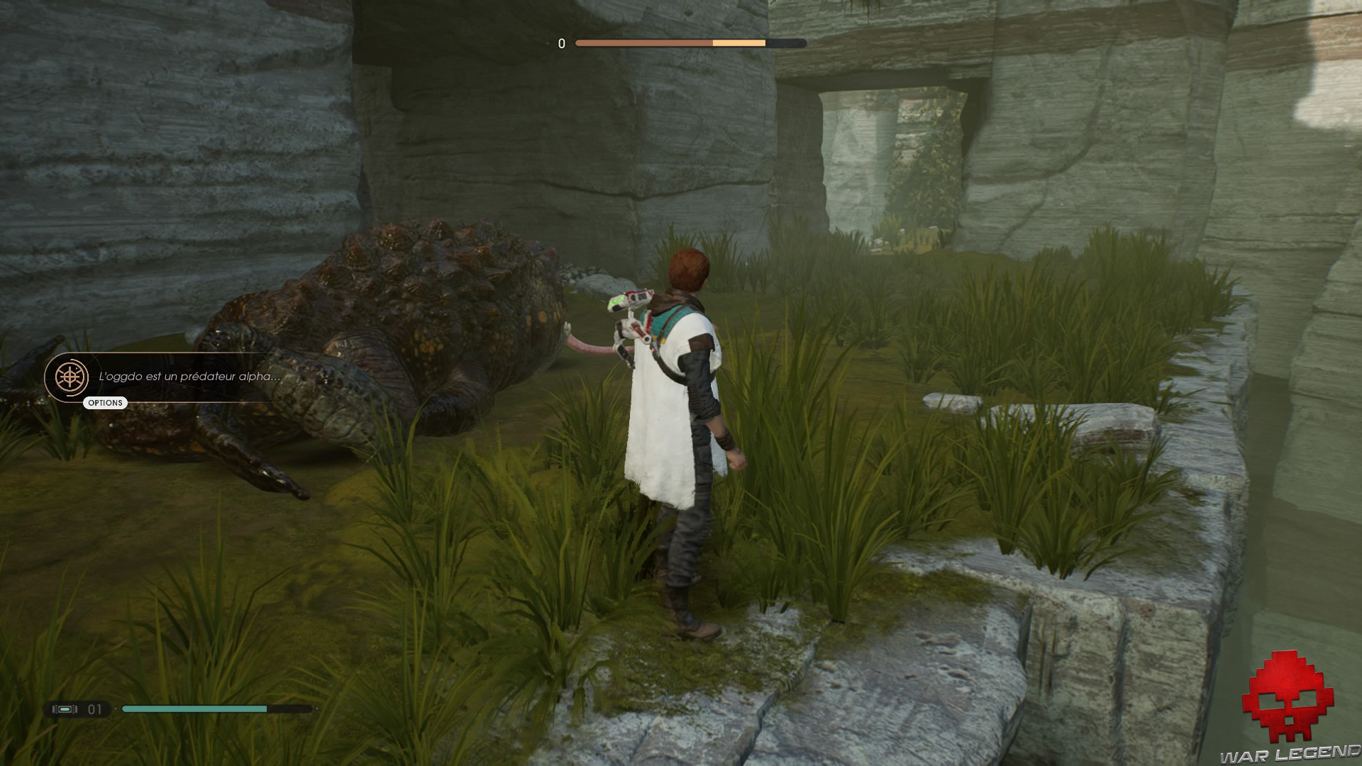 De là, vous allez faire la rencontre de BD-1 qui vous ouvrira la voie en abaissant un pont métallique, vous permettant de grimper sur les lianes. Une fois en haut, prenez à gauche pour aller récupérer votre premier message écho qui se situe en bas, juste après les créatures sauvages.