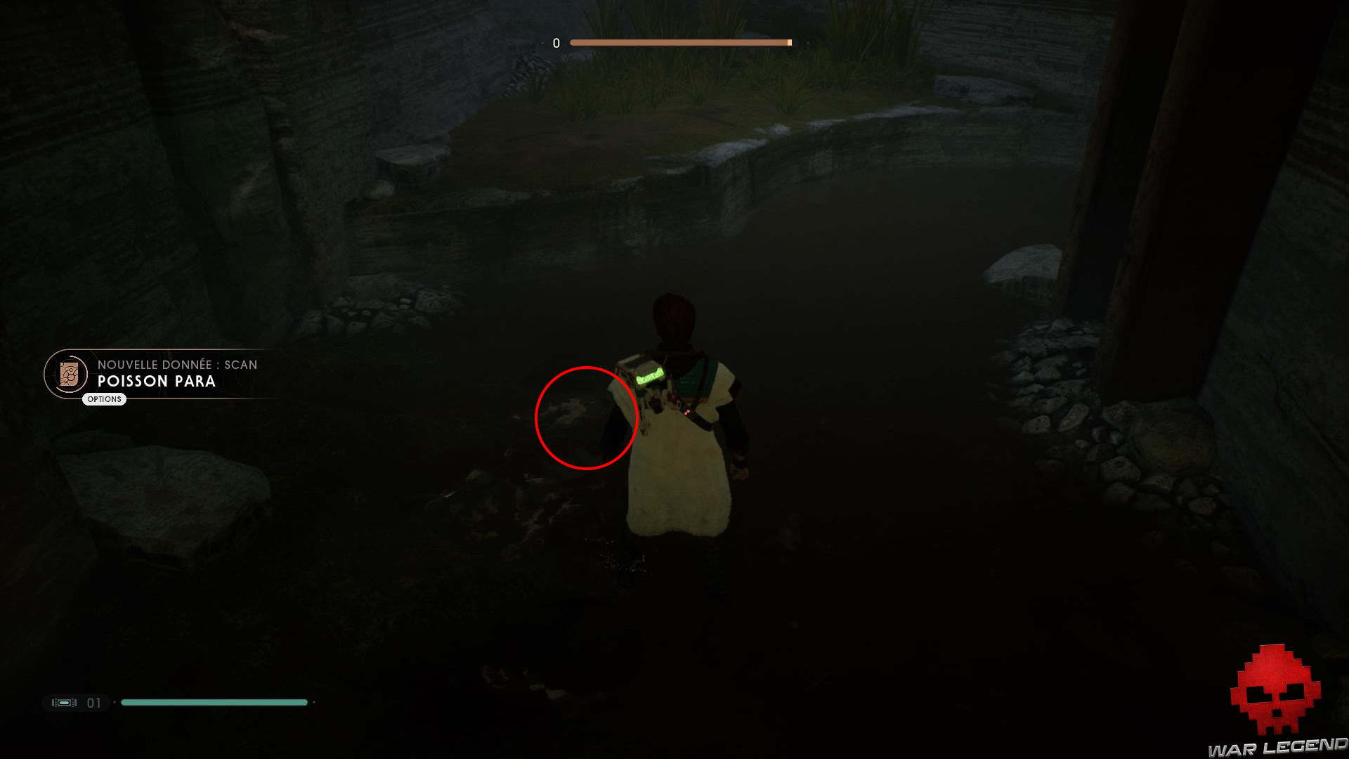 Ensuite, sautez en bas au niveau de l’eau pour récupérer une donnée de scan sur les poissons para.