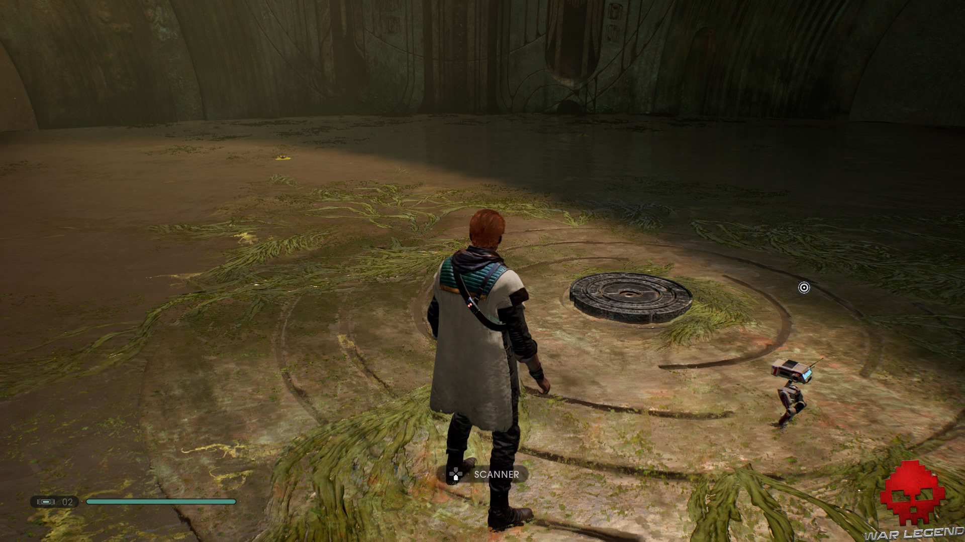 Puisque vous ne possédez pas encore le pouvoir de courir sur les murs, descendez et dirigez-vous jusqu’au bout de la pièce. N’oubliez pas de scanner la fissure sur le mur de droite pour débloquer une nouvelle donnée.