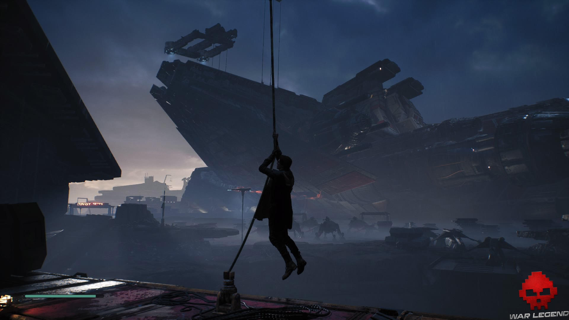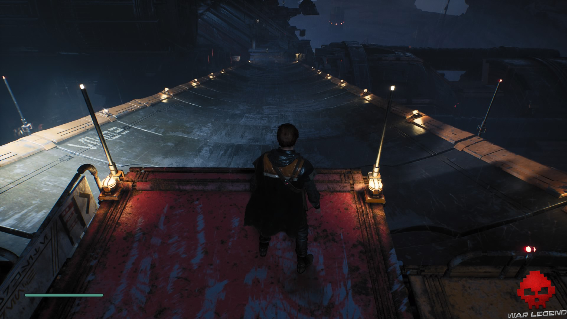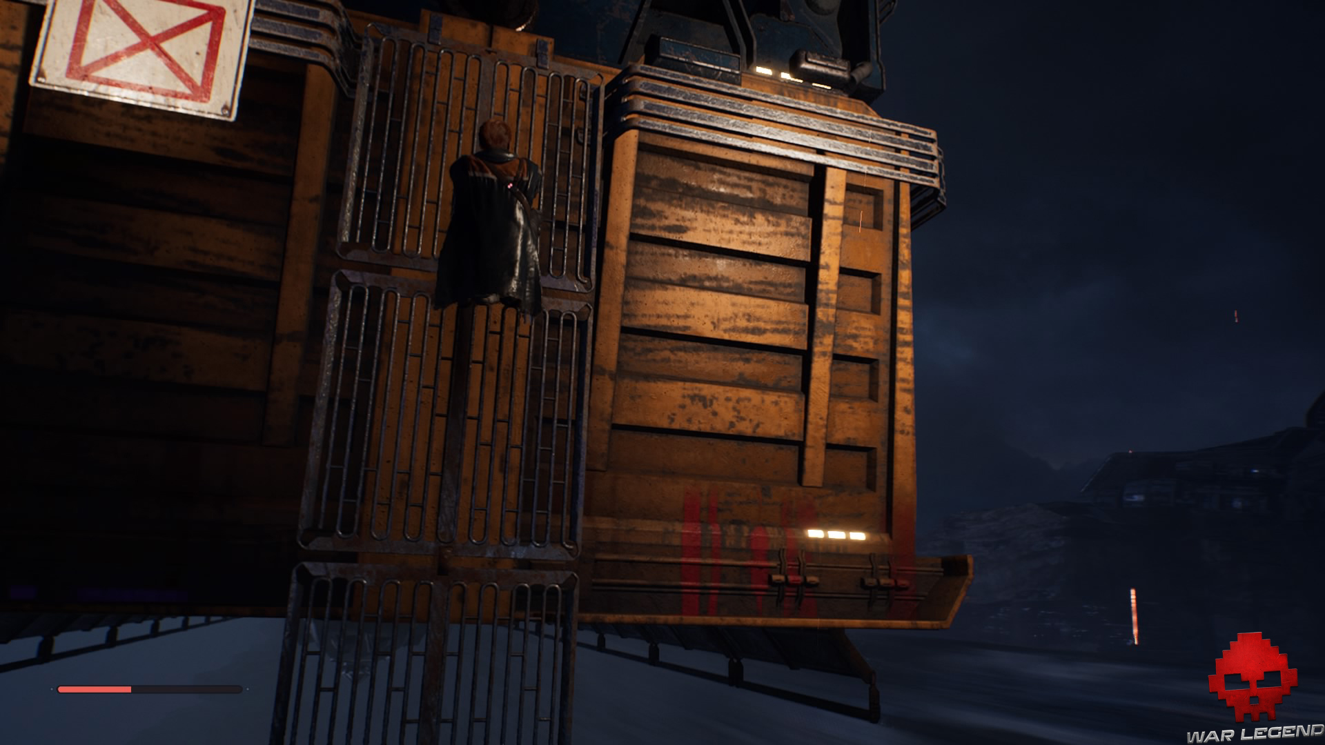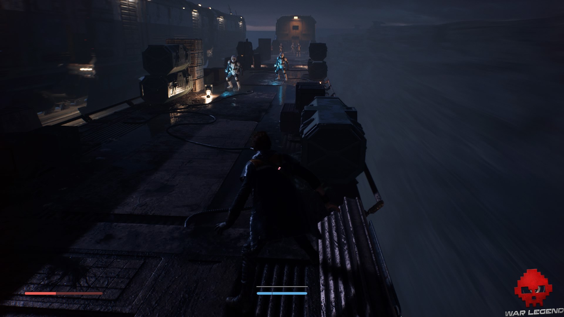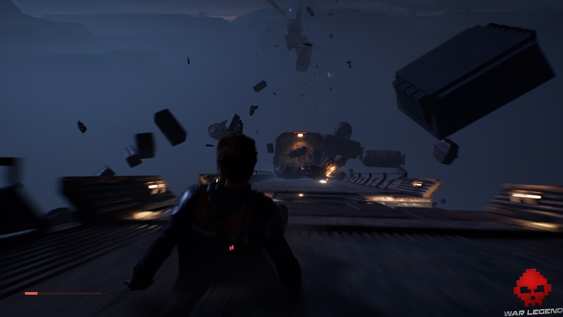 Une fois la zone déblayée, continuez tout droit jusqu’à arriver sur le toit d’un wagon. De là, une cinématique se lance dans laquelle vous allez devoir diriger votre personnage pendant qu’il glisse avant de sauter au dernier moment dans le vaisseau en face de vous.