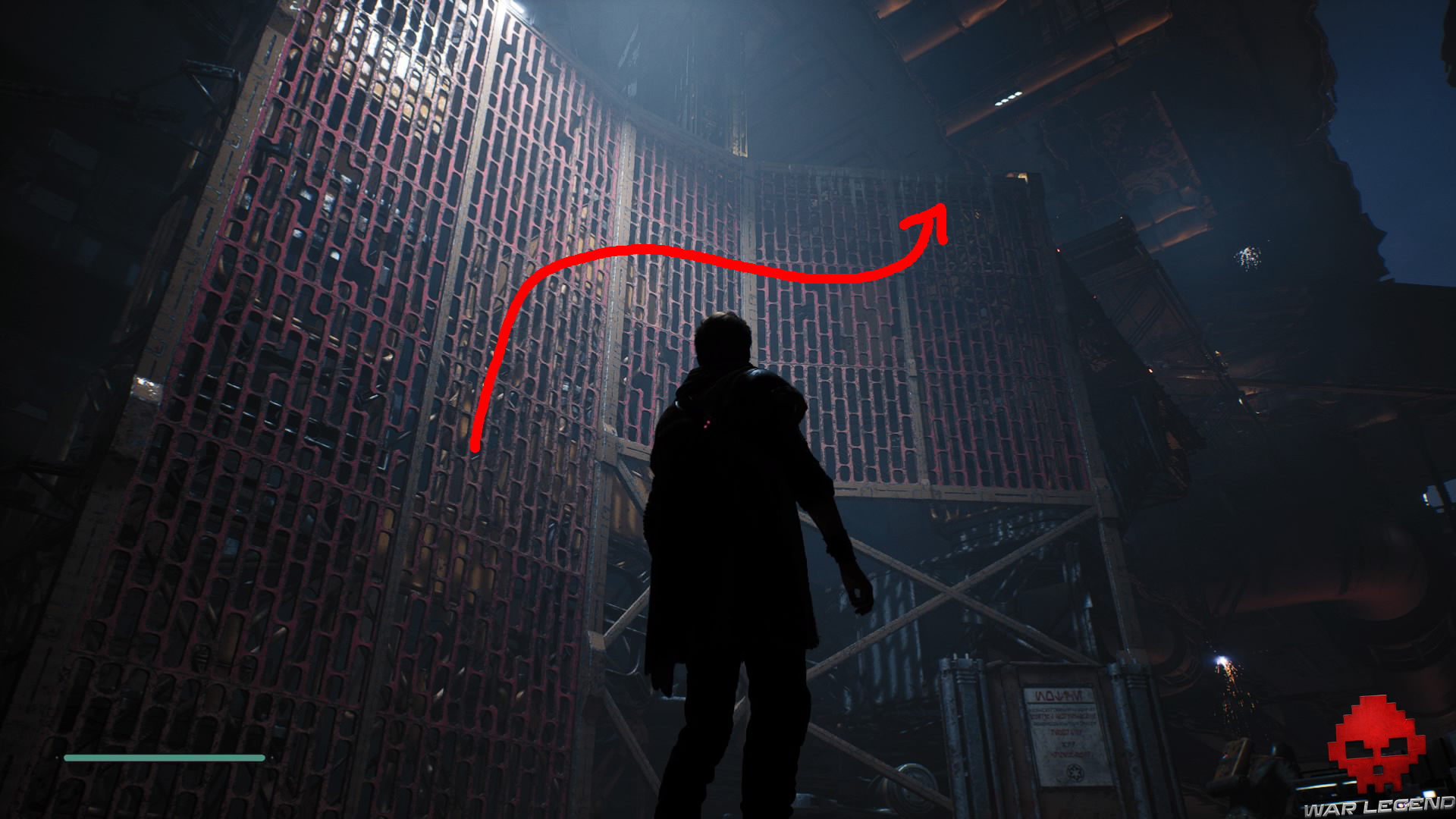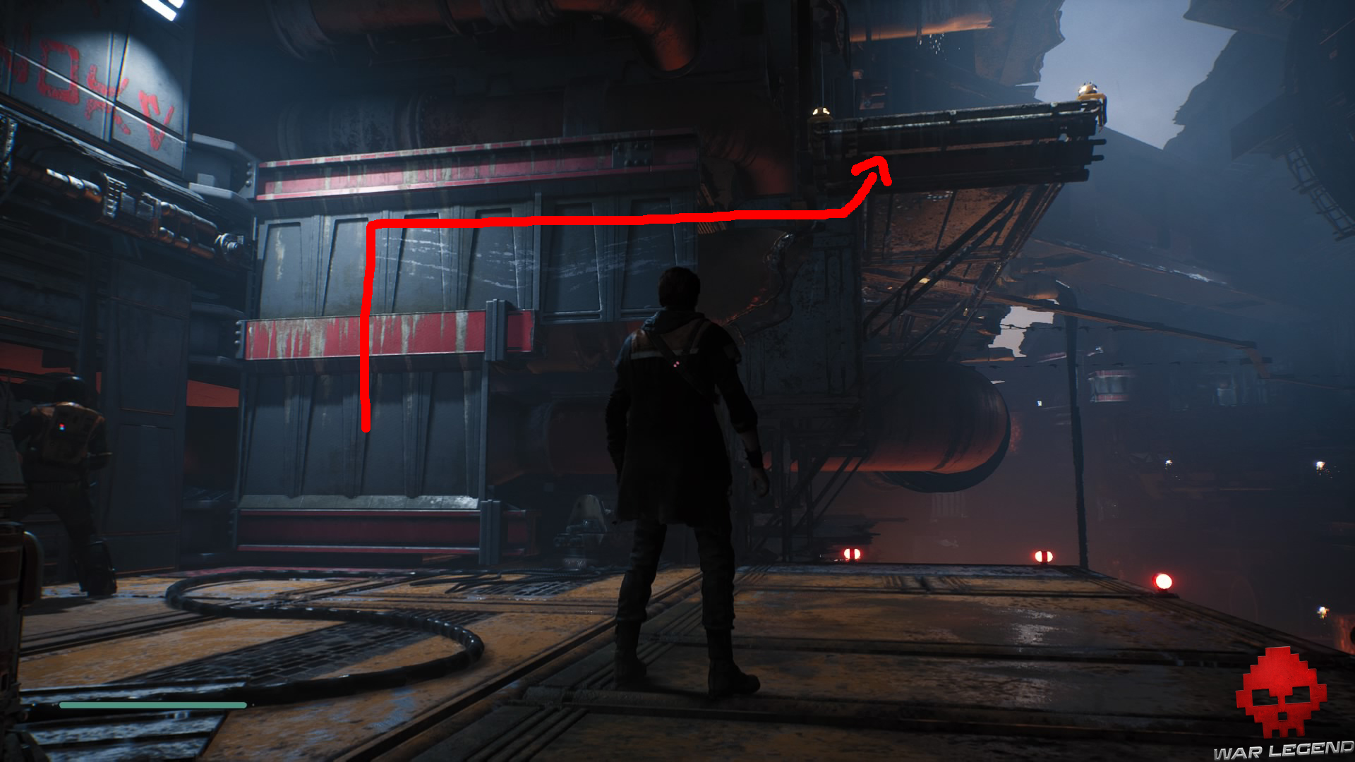 Poursuivez votre progression dans les conduits jusqu’à tomber nez à nez avec d’autres poutres rouges. Il faudra bien évidemment les escalader en longeant la gauche, avant de se laisser tomber sur une plateforme en contrebas.