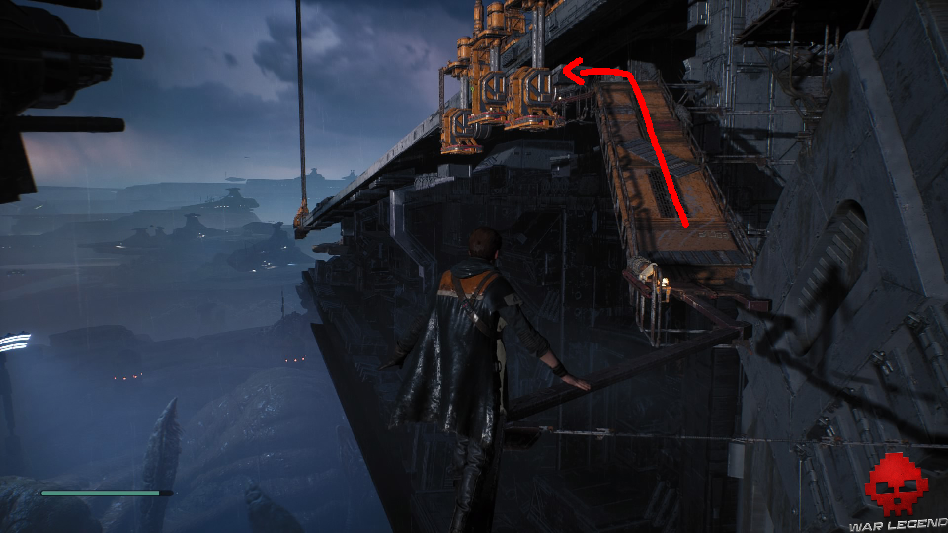 Une fois devant une énorme aération, vous devez utiliser votre pouvoir de Jedi afin de ralentir la grille, puis grimper dessus afin d’atteindre l’ouverture sur le plafond.