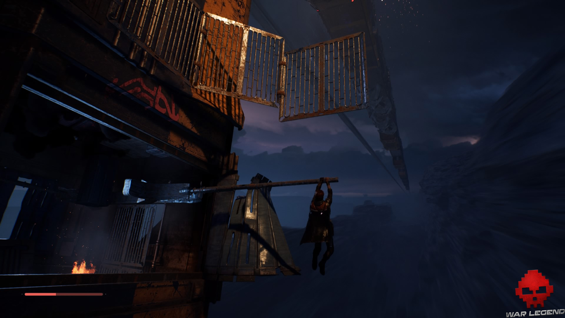 De là, sautez sur la grille en face de vous, longez la gauche, puis laisser vous tomber une nouvelle fois en bas. Le jeu vous met une nouvelle fois face à une corde qu’il faudra agripper afin de se balancer et atteindre une autre grille en face.