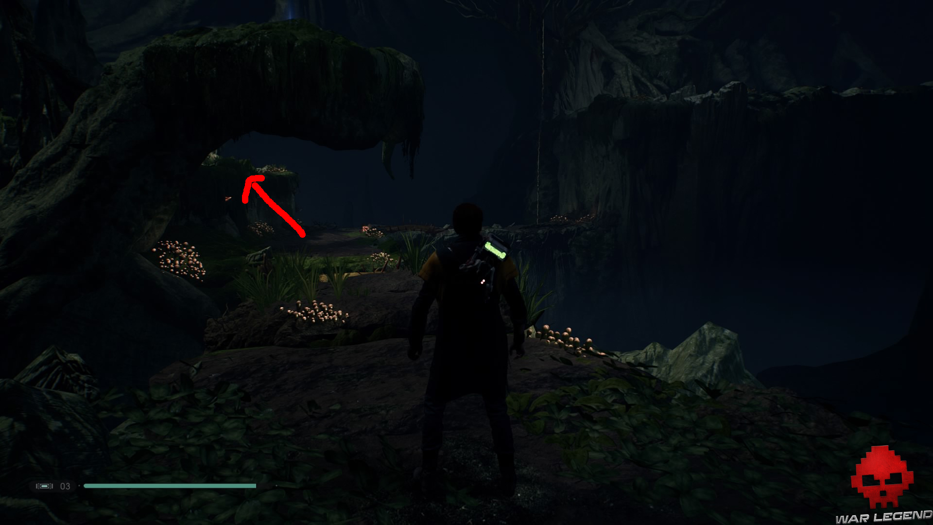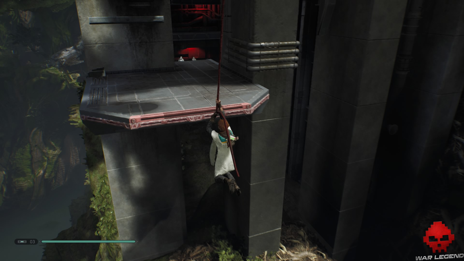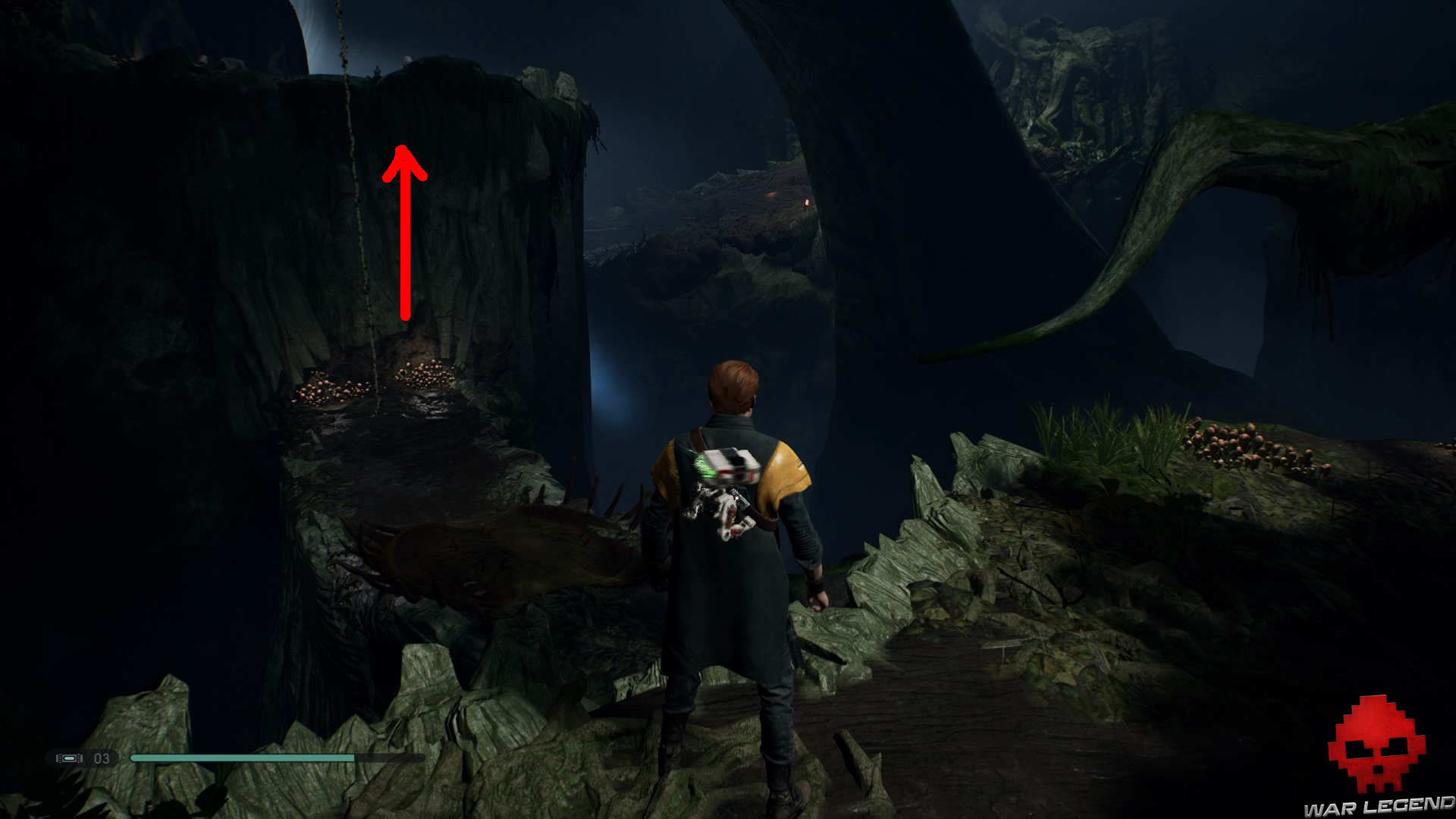 Une fois fait, dirigez-vous vers la liane et grimpez tout en haut.