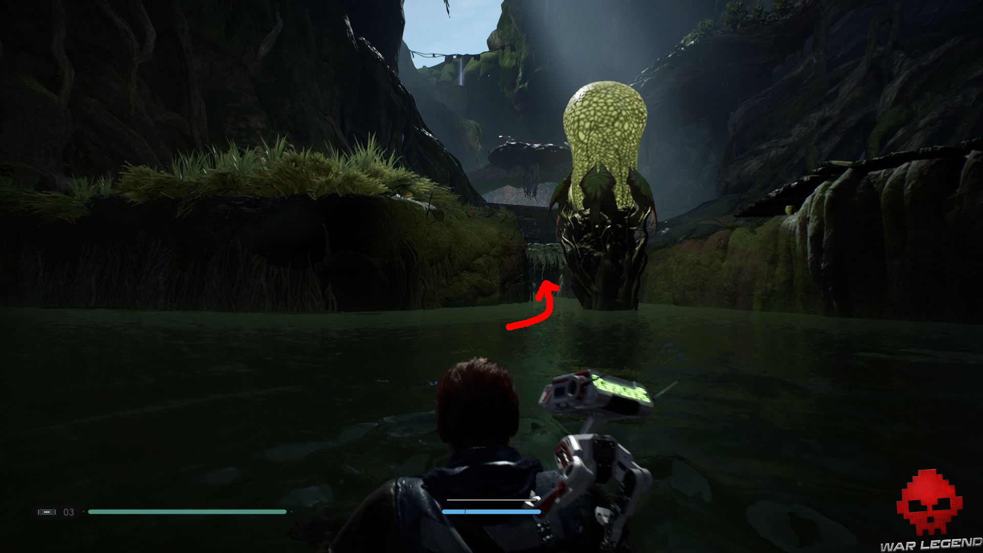 Une fois posé sur Kashyyyk, ramassez l’écho posé sur le sol, puis partez en direction de la tranchée.