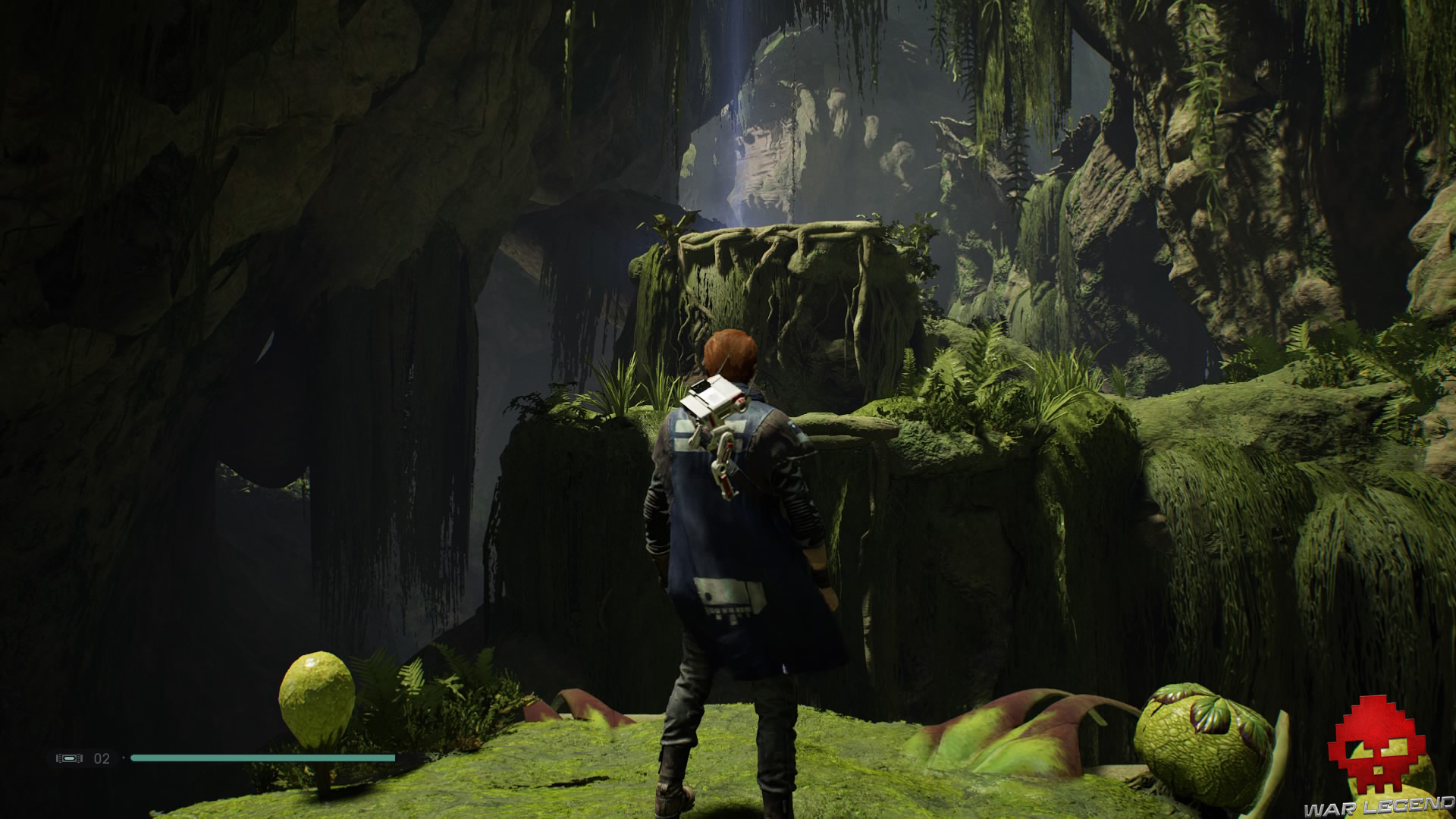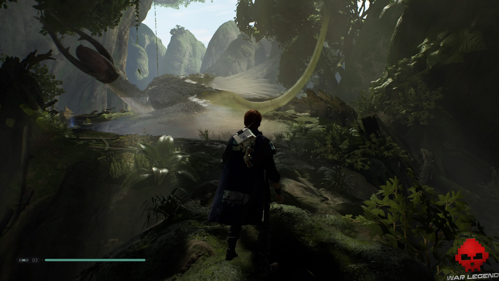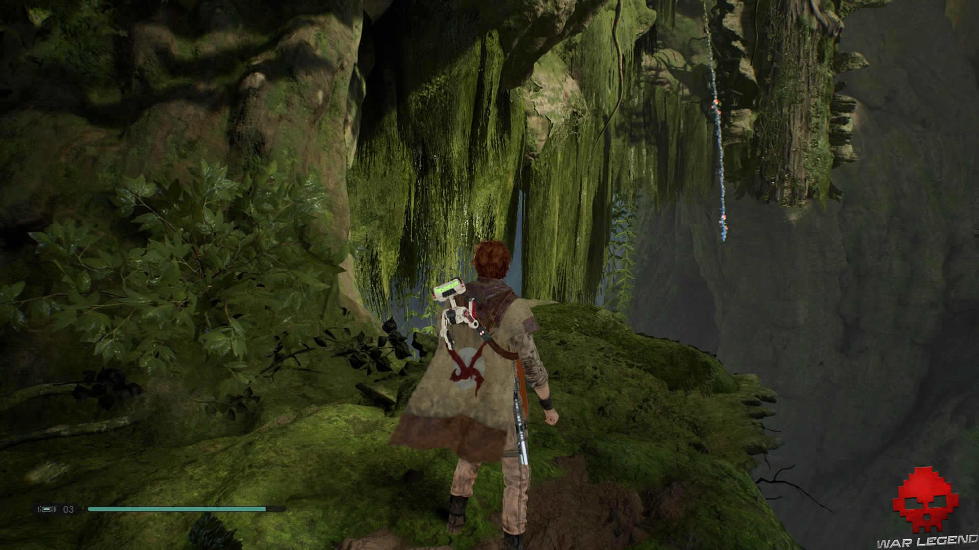 Ensuite, rebroussez chemin et dirigez-vous vers la liane qui pend au-dessus du vide. Balancez-vous et sautez sur le tronc d’arbre suspendu situé de l’autre côté.