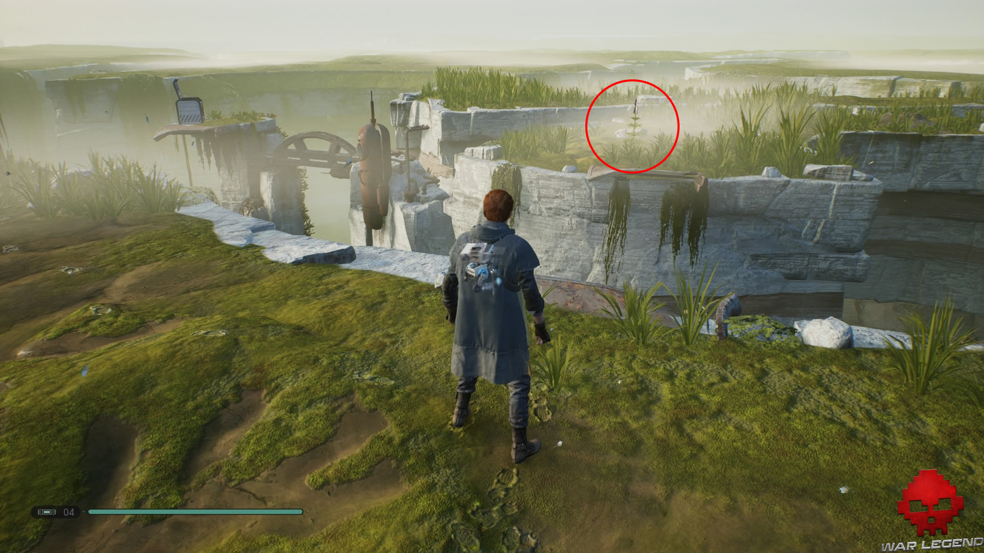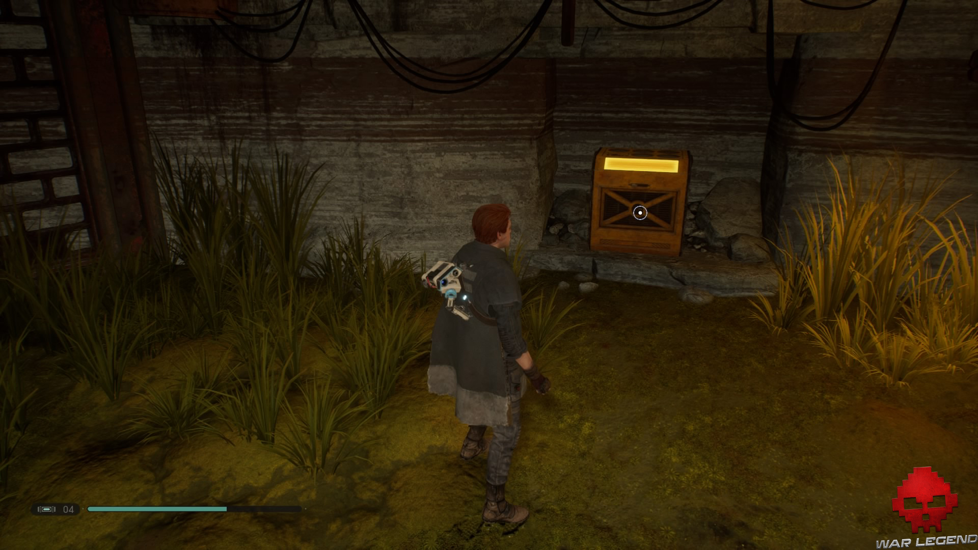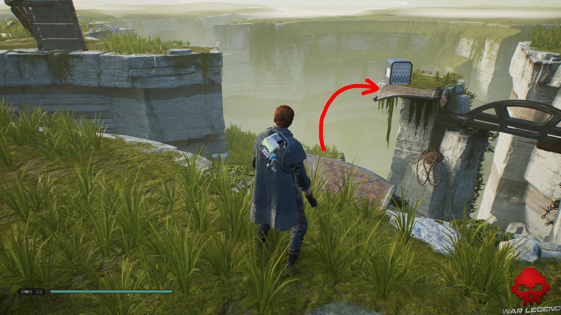 Puis, courez vous mettre sur les rochers du fond et utilisez une nouvelle fois la poussée en direction du socle. Une fois fait, récupérez le coffre à stim à l’intérieur.