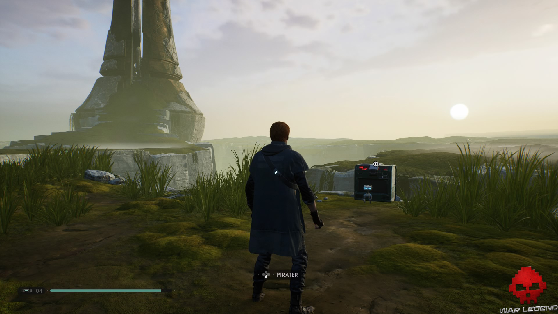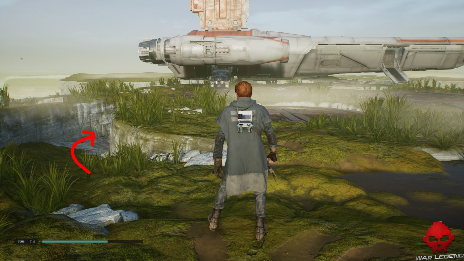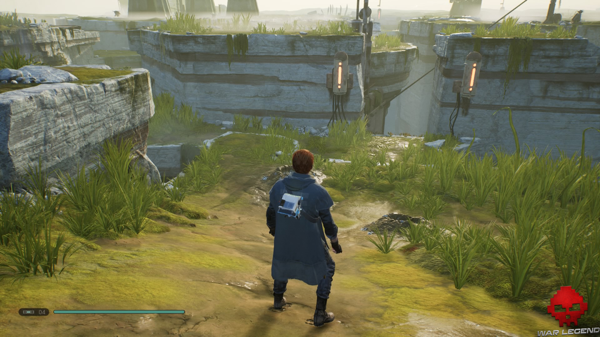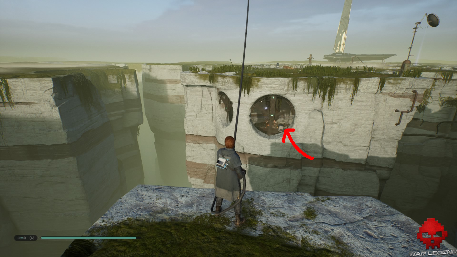 Puis, courez vous mettre sur les rochers du fond et utilisez une nouvelle fois la poussée en direction du socle. Une fois fait, récupérez le coffre à stim à l’intérieur.