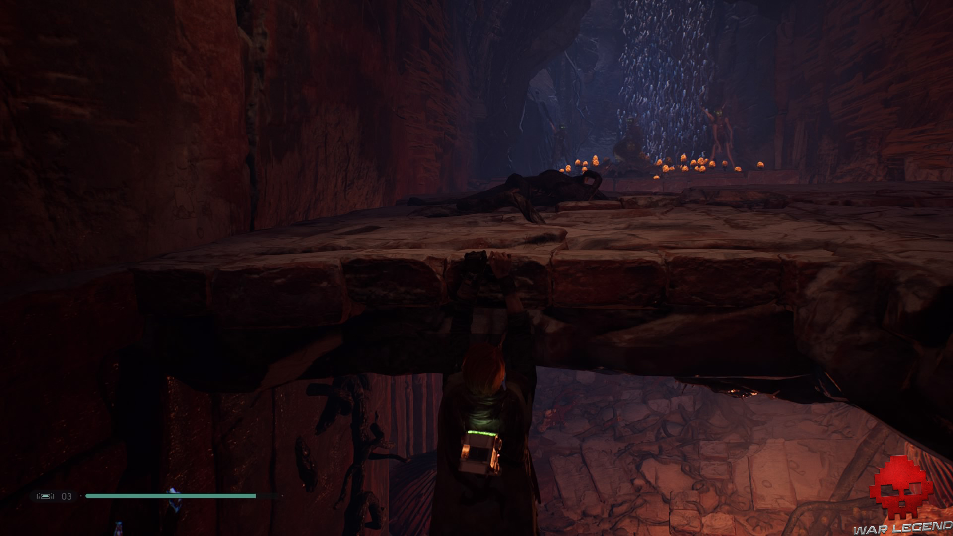 De là, sautez sur le rebord en face grâce à votre double saut, puis affrontez les frères de la nuit qui vous attaquent. Malheureusement pour vous, le combat se termine par la fissure du sol qui vous emmène tout en bas de la zone.