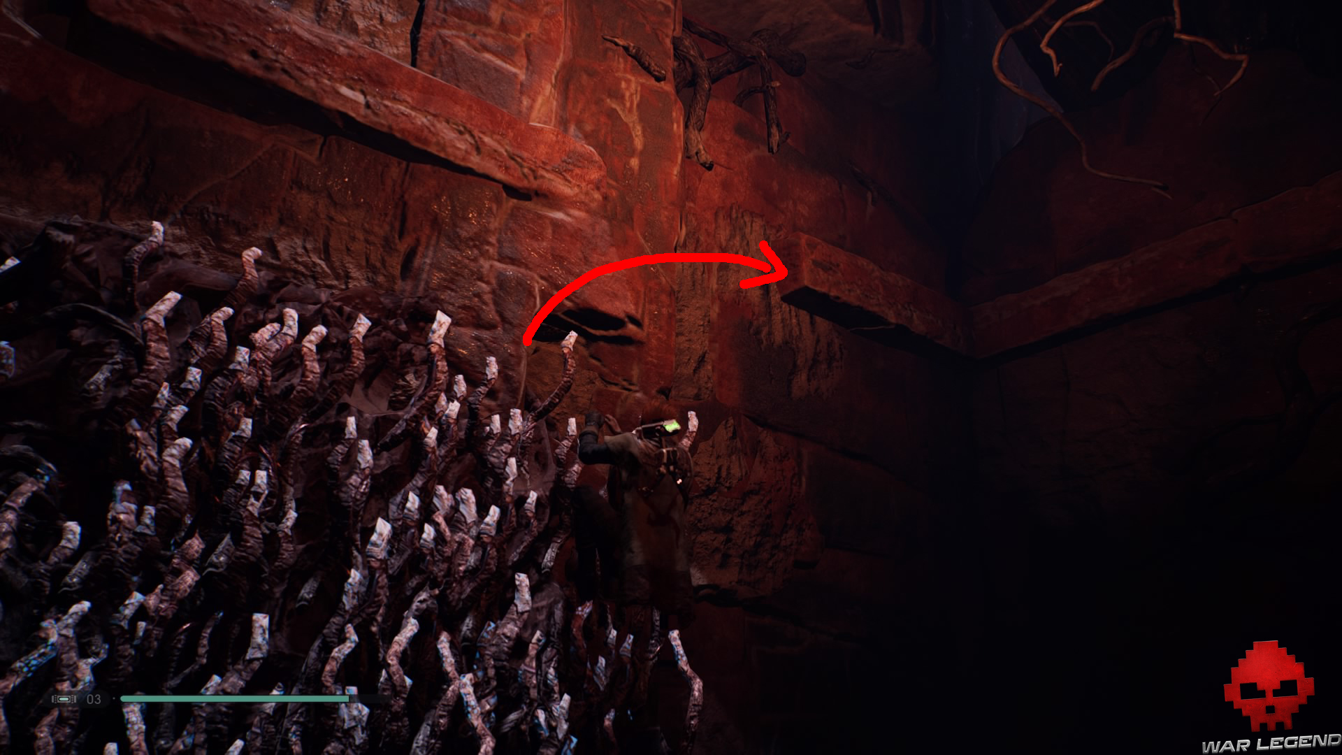Utilisez votre traction pour la rabattre afin de vous en servir comme mur de substitution et atteindre le point de méditation au-dessus. Ramassez l’écho, puis continuez en direction des racines.