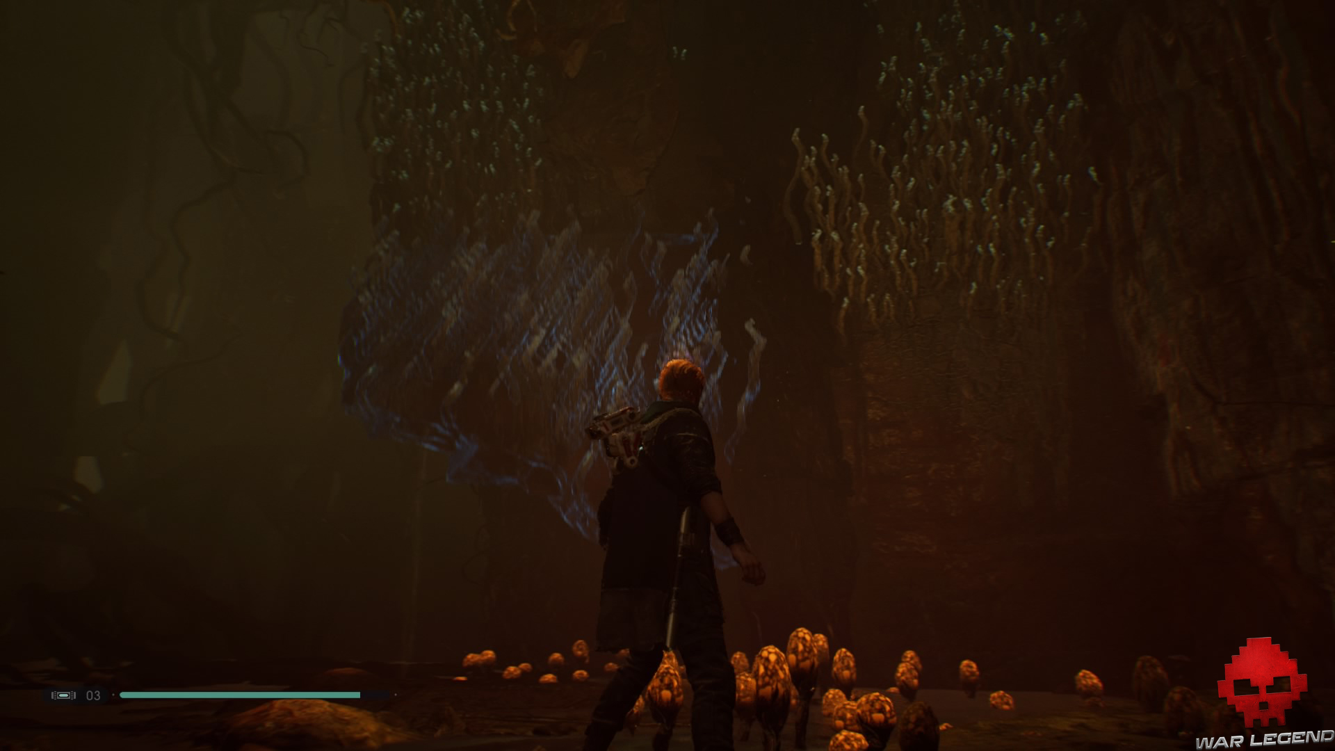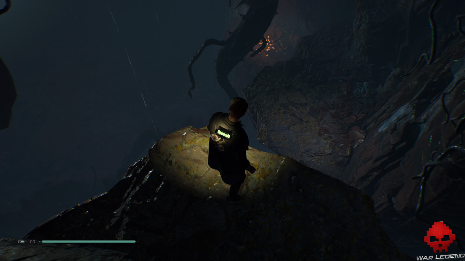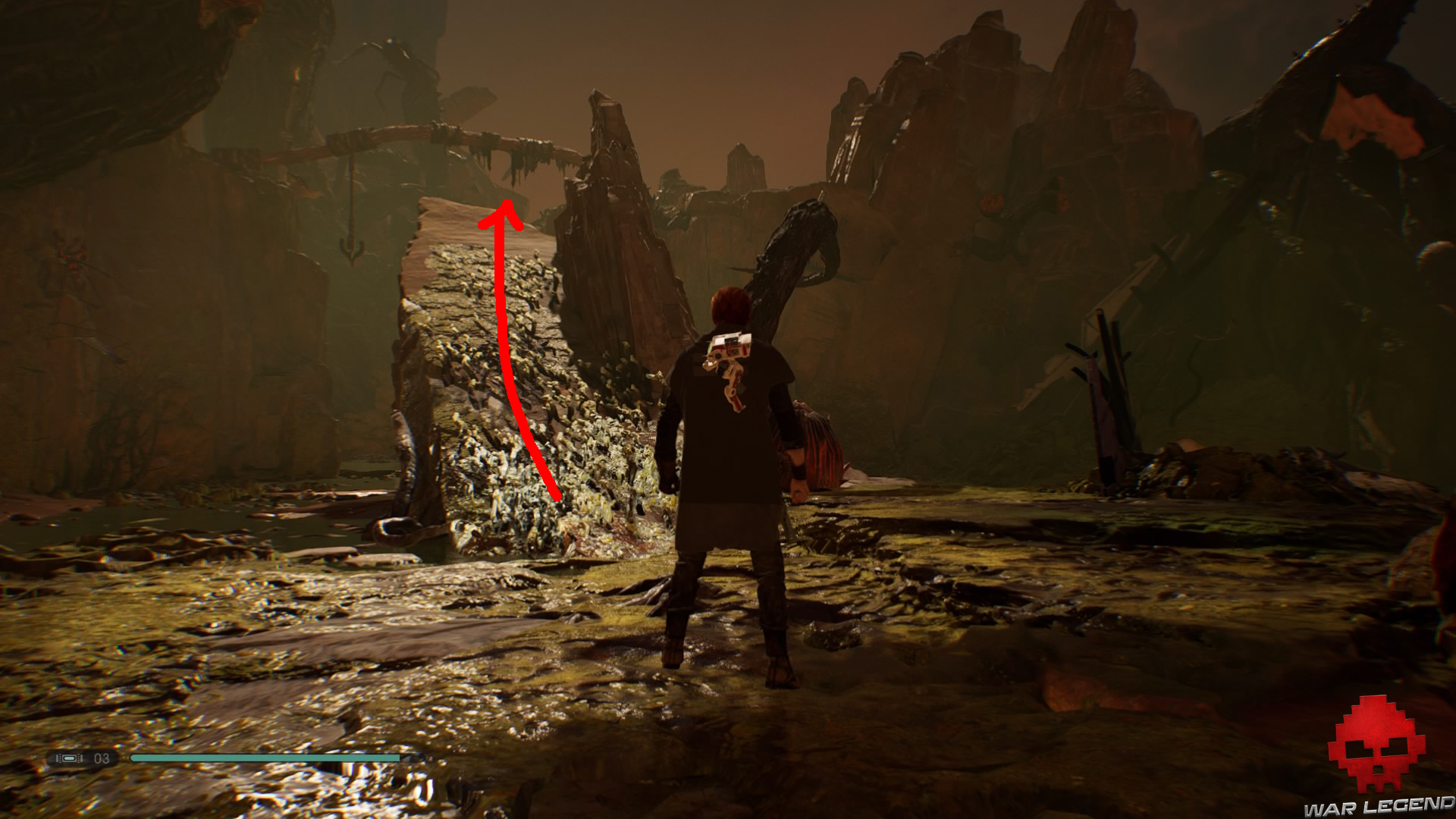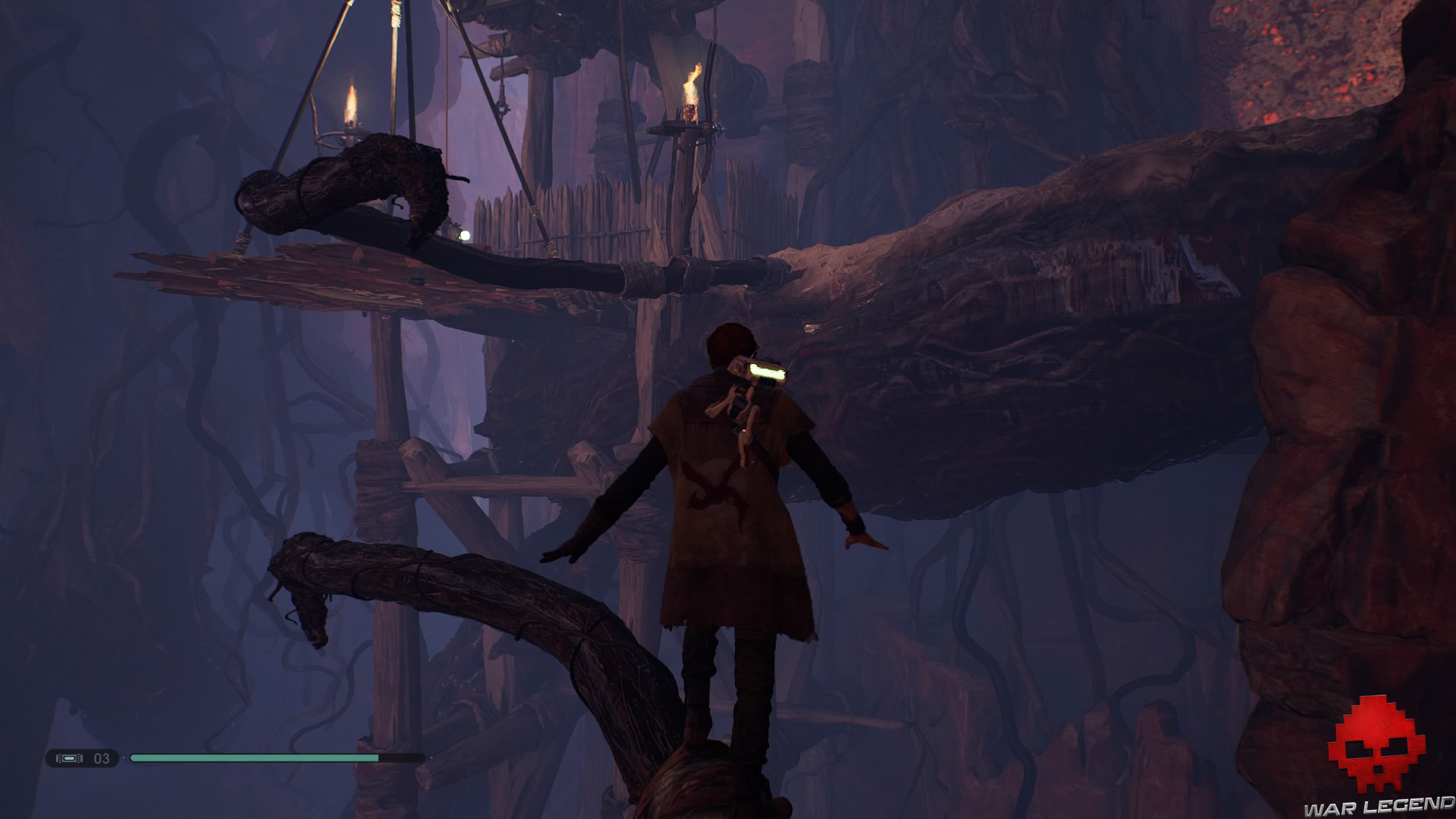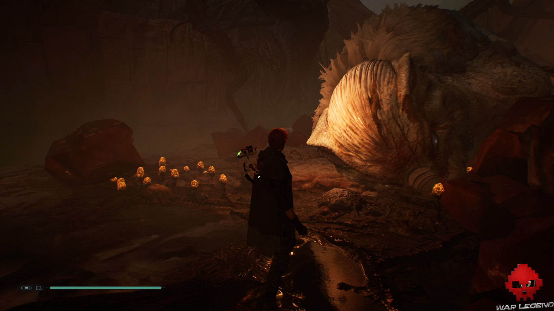 Lorsque vous lui aurez descendu assez de vie, la bête fuira le combat et vous laissera tout le loisir de piller le cadavre du frère de la nuit. L’occasion de débloquer les griffes d’escalade qui permettent désormais de grimper sur les lichens de feu.