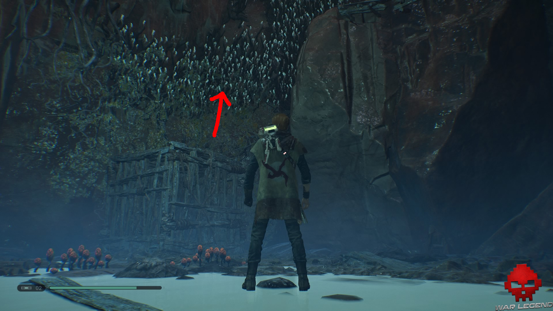 Une fois arrivé à la caverne bleutée, ramassez l’écho derrière la cage en bois.