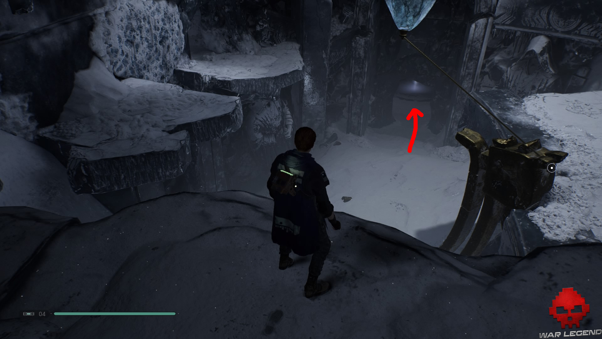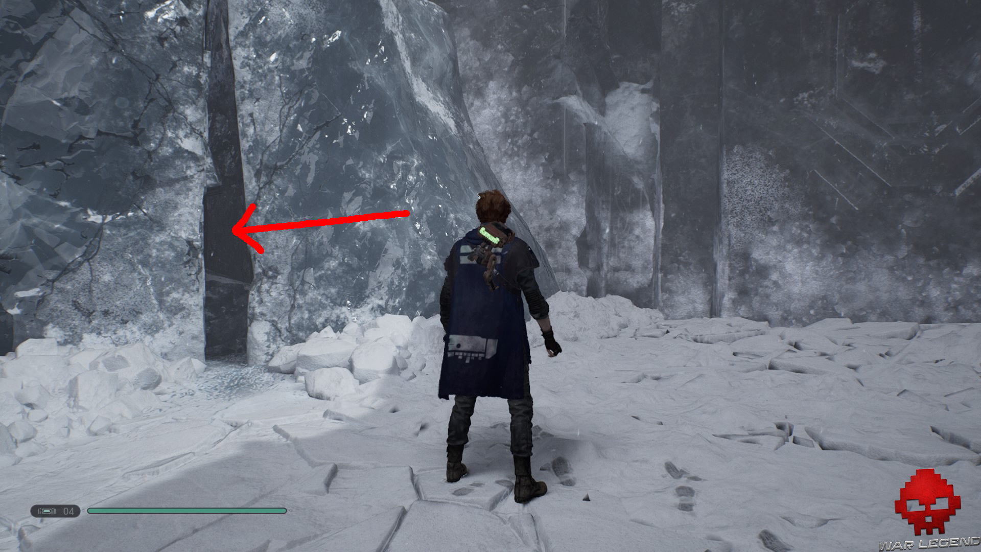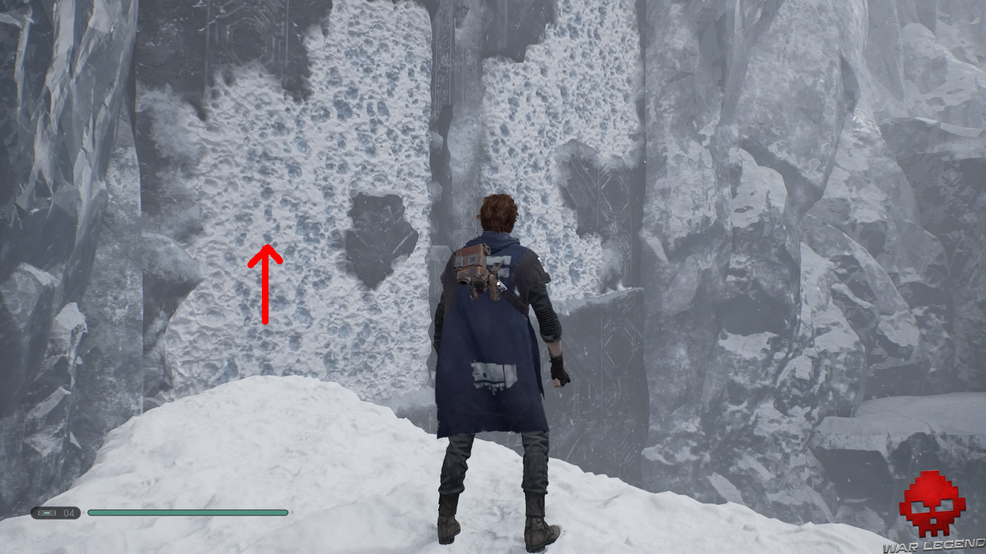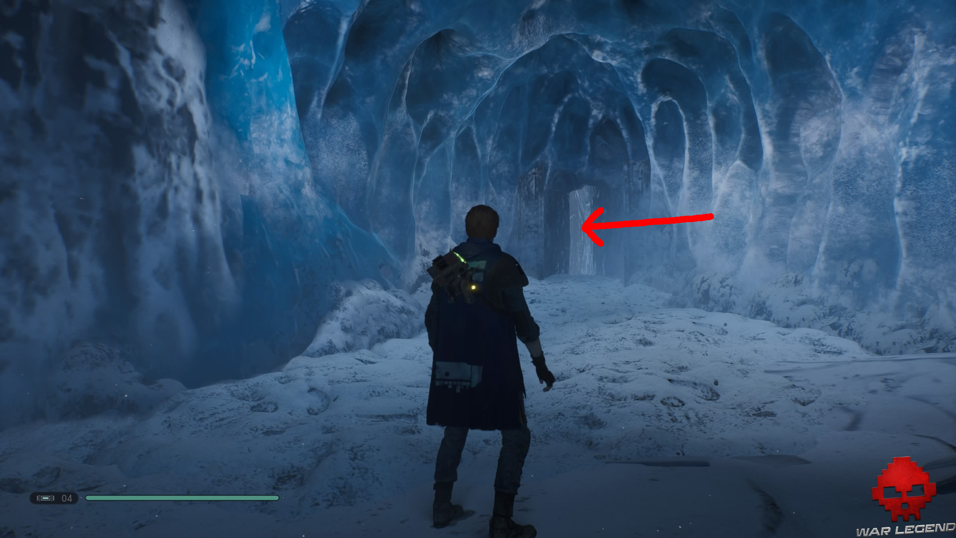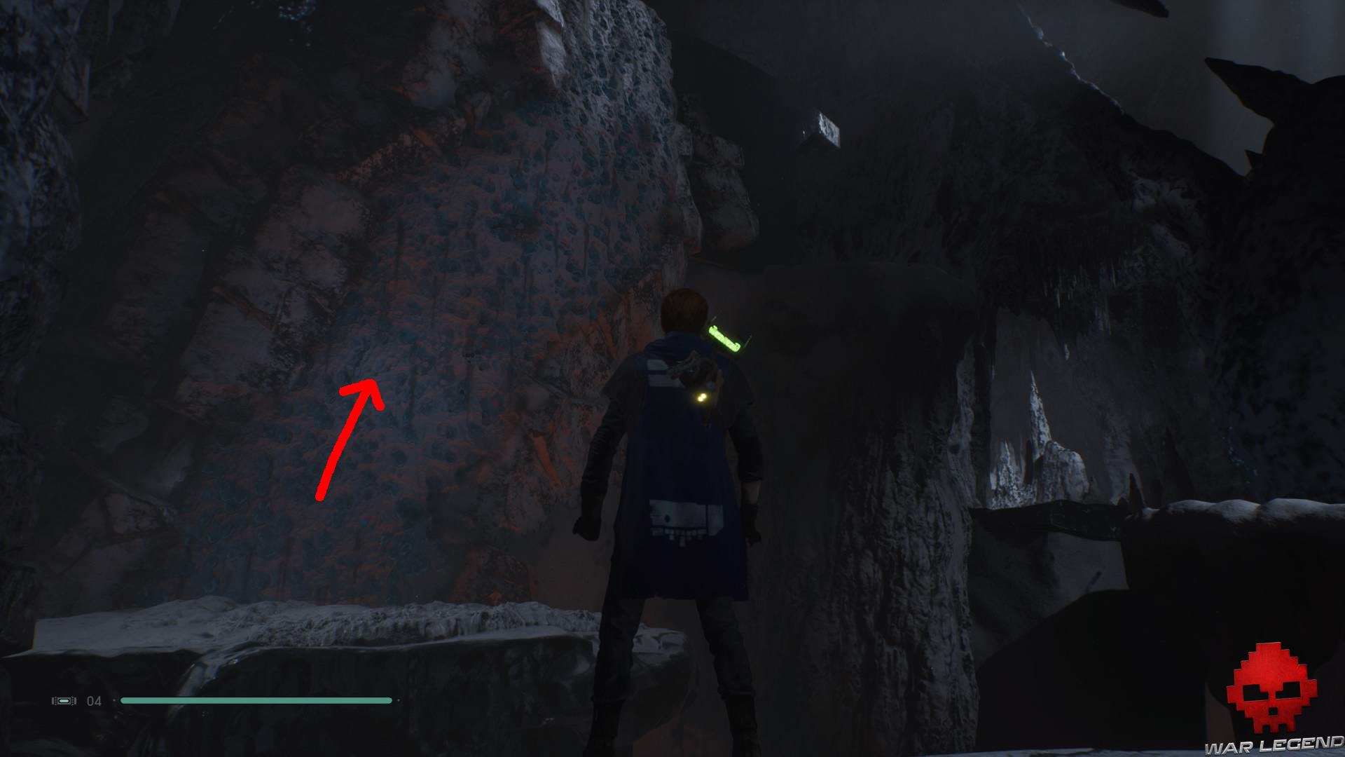 Une fois remonté à la surface, grimpez jusqu’à atteindre l’entrée de la caverne où se trouve le cristal Kyber.