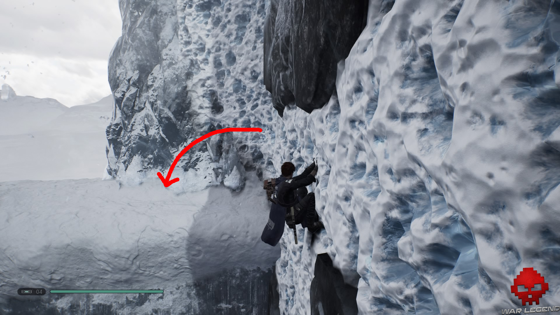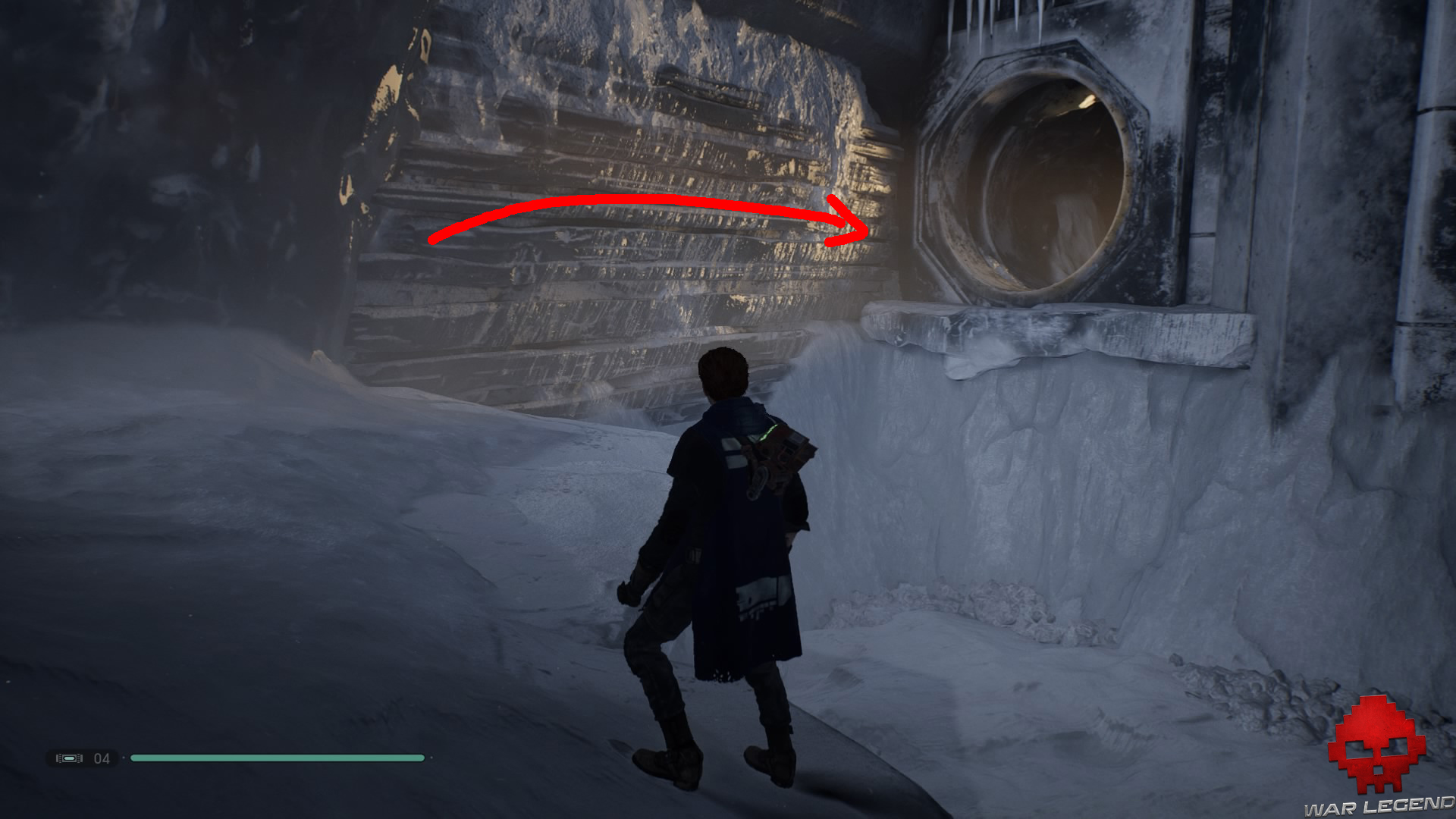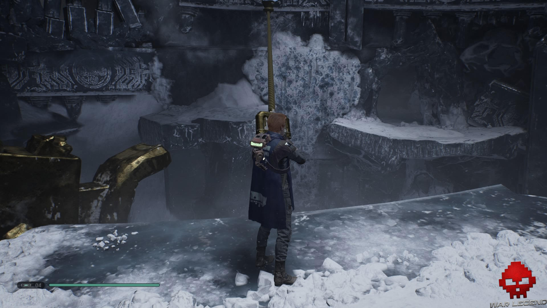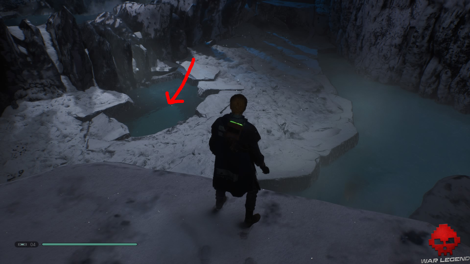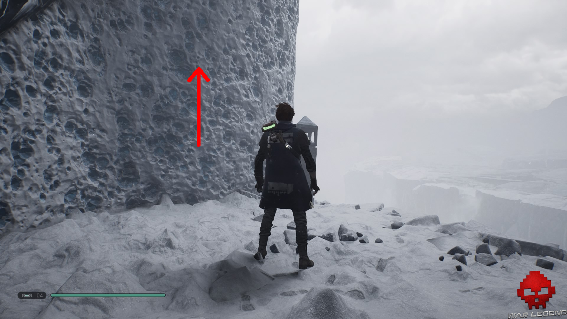 Une fois remonté à la surface, grimpez jusqu’à atteindre l’entrée de la caverne où se trouve le cristal Kyber.