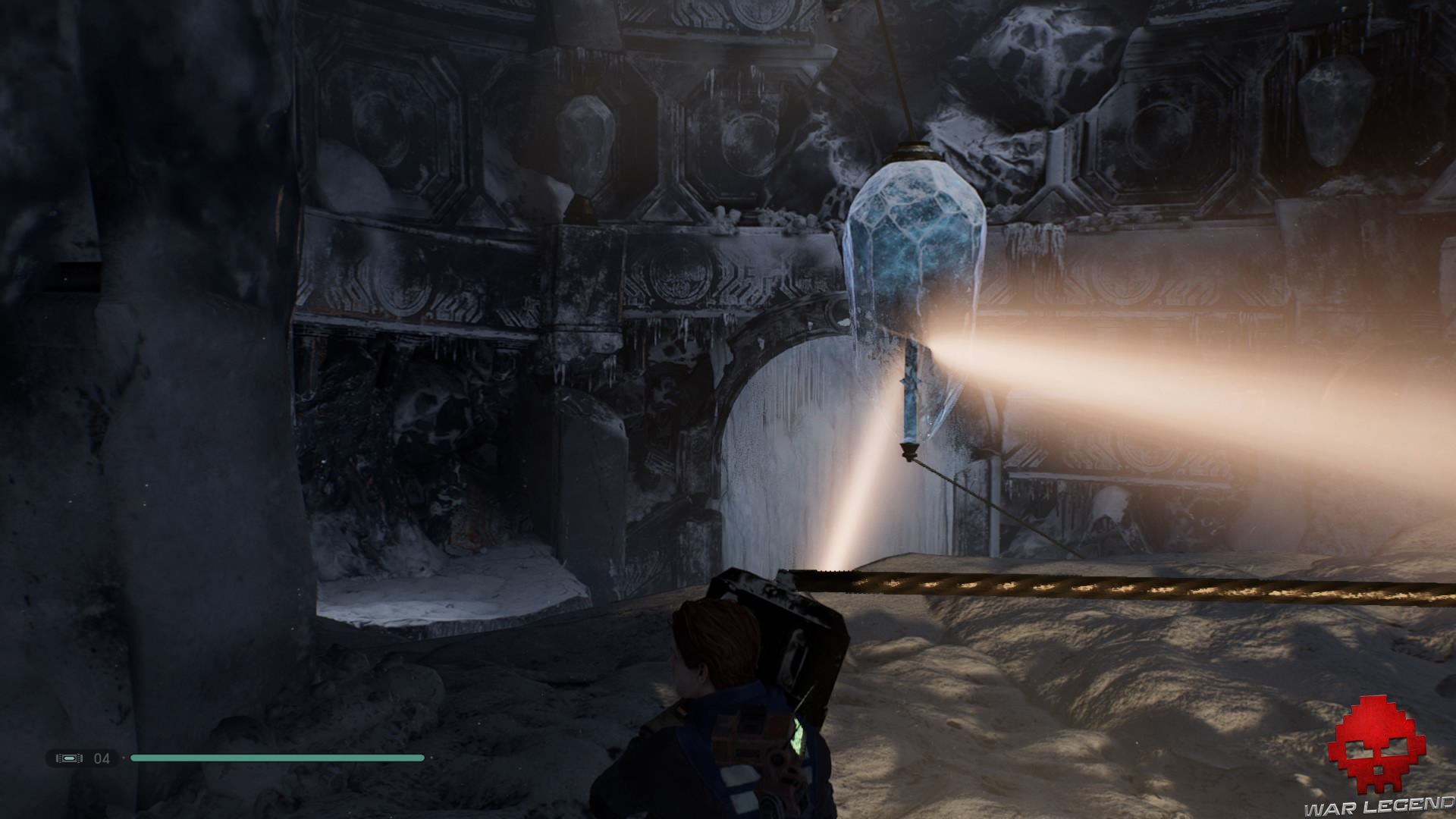 Ensuite, empoignez la corde du cristal puis bougez-le pour qu’il s’aligne sur le rayon de soleil. Cela aura pour effet de faire fondre la paroi au fond de la pièce.