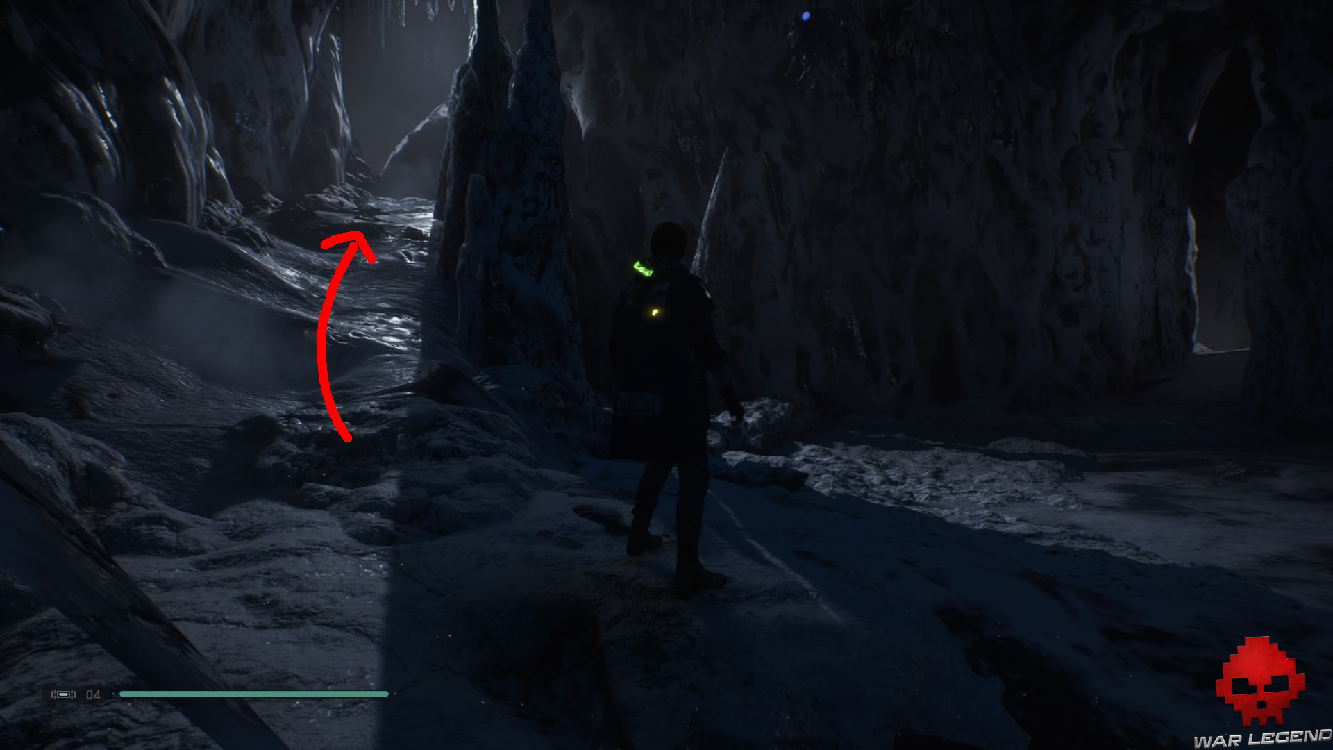 Arrivé à mi-chemin, sautez sur le rebord à gauche, puis engouffrez-vous dans la caverne.