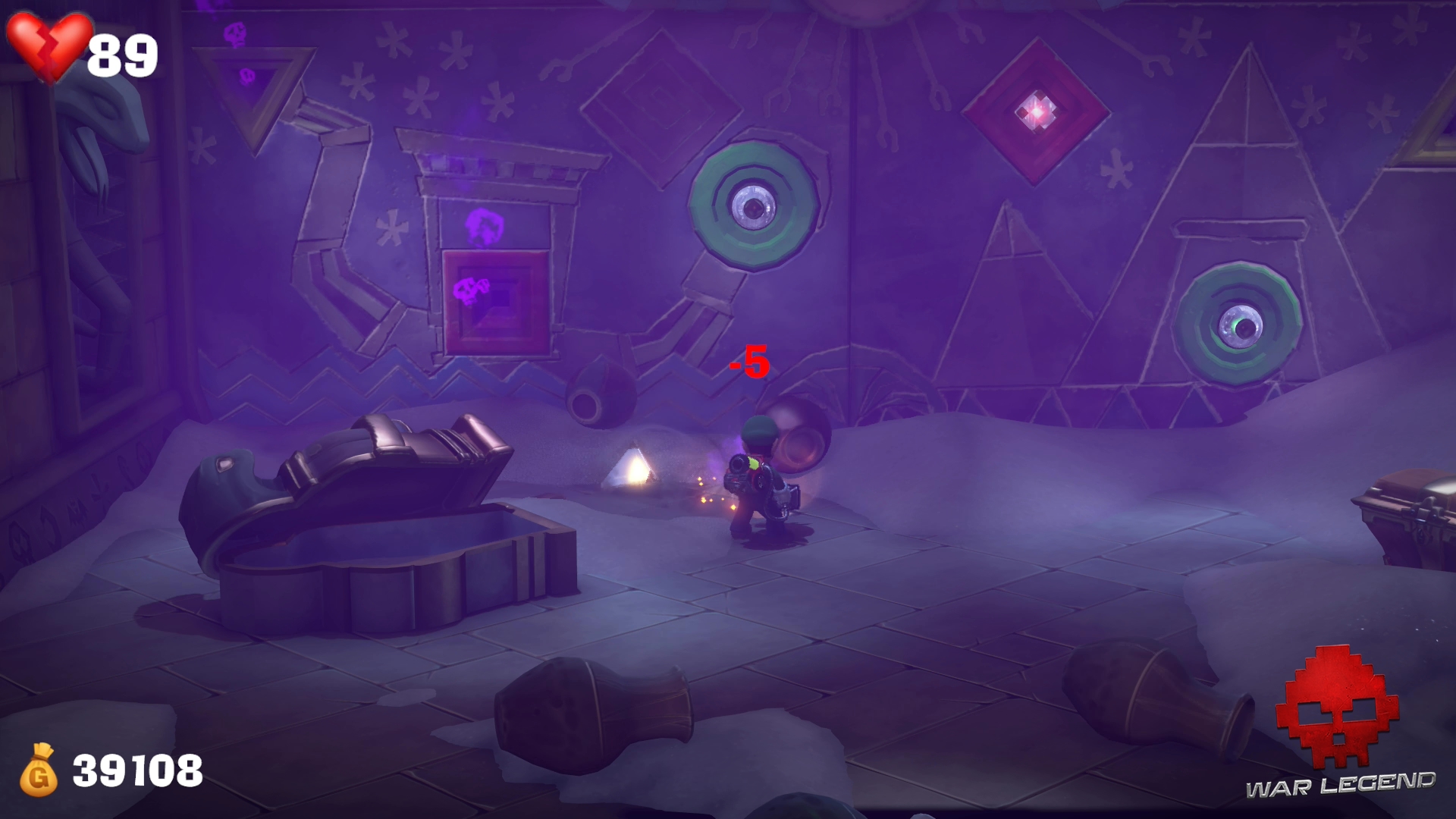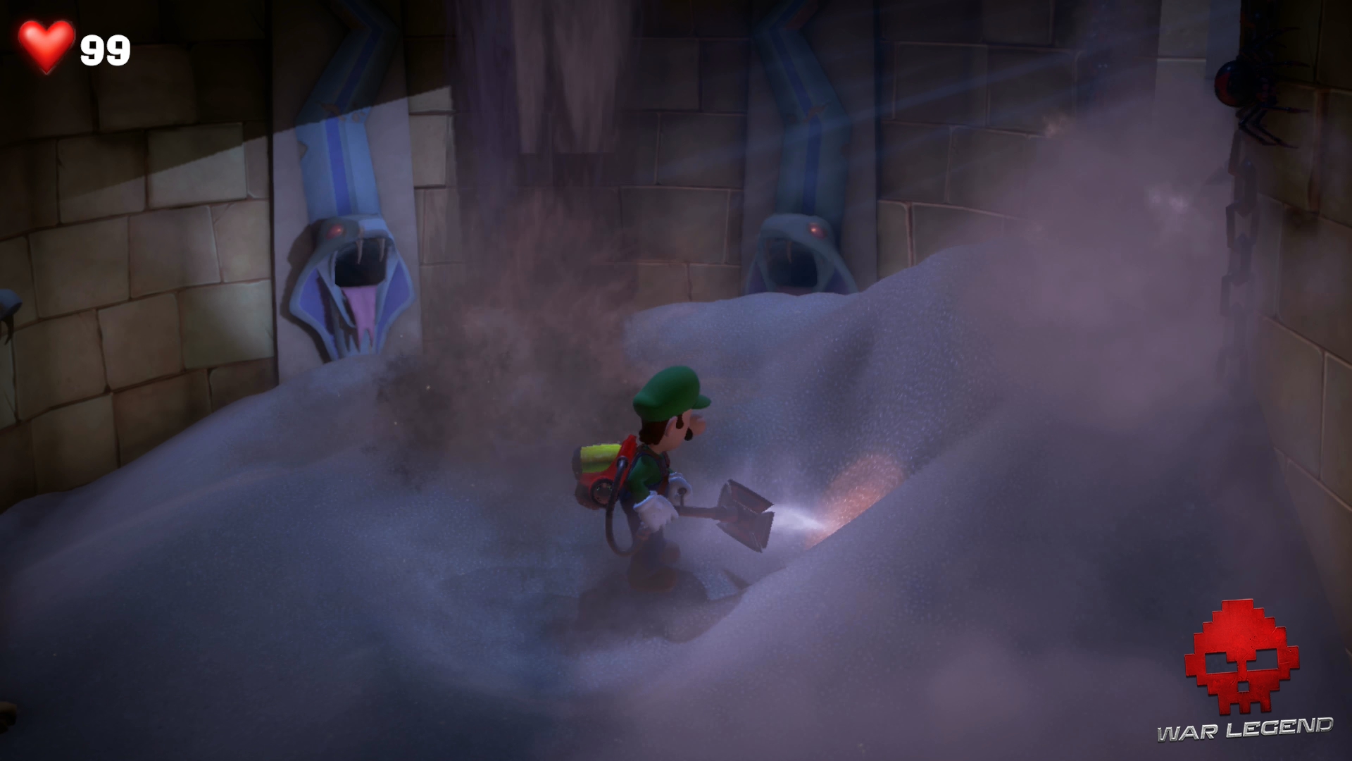Une fois que tous les trous ont été comblés, vous voilà tiré d’affaire. Actionnez la troisième statue et revenez dans la pièce principale. Des fantômes vous attaquent, défendez-vous.