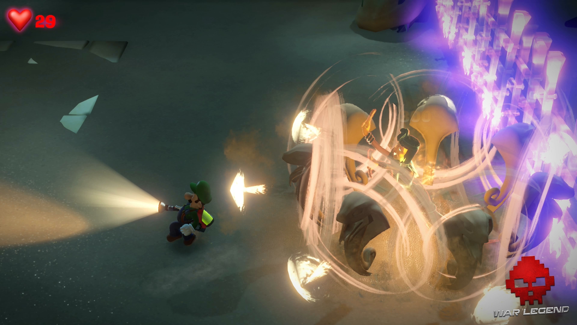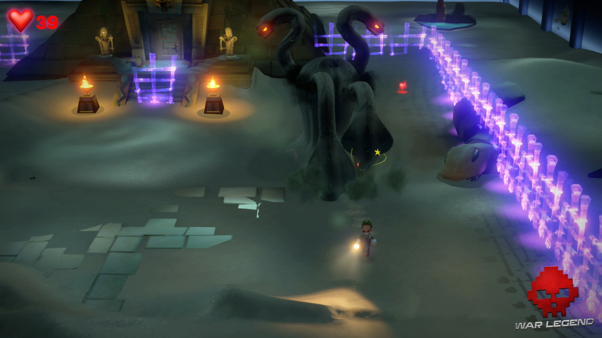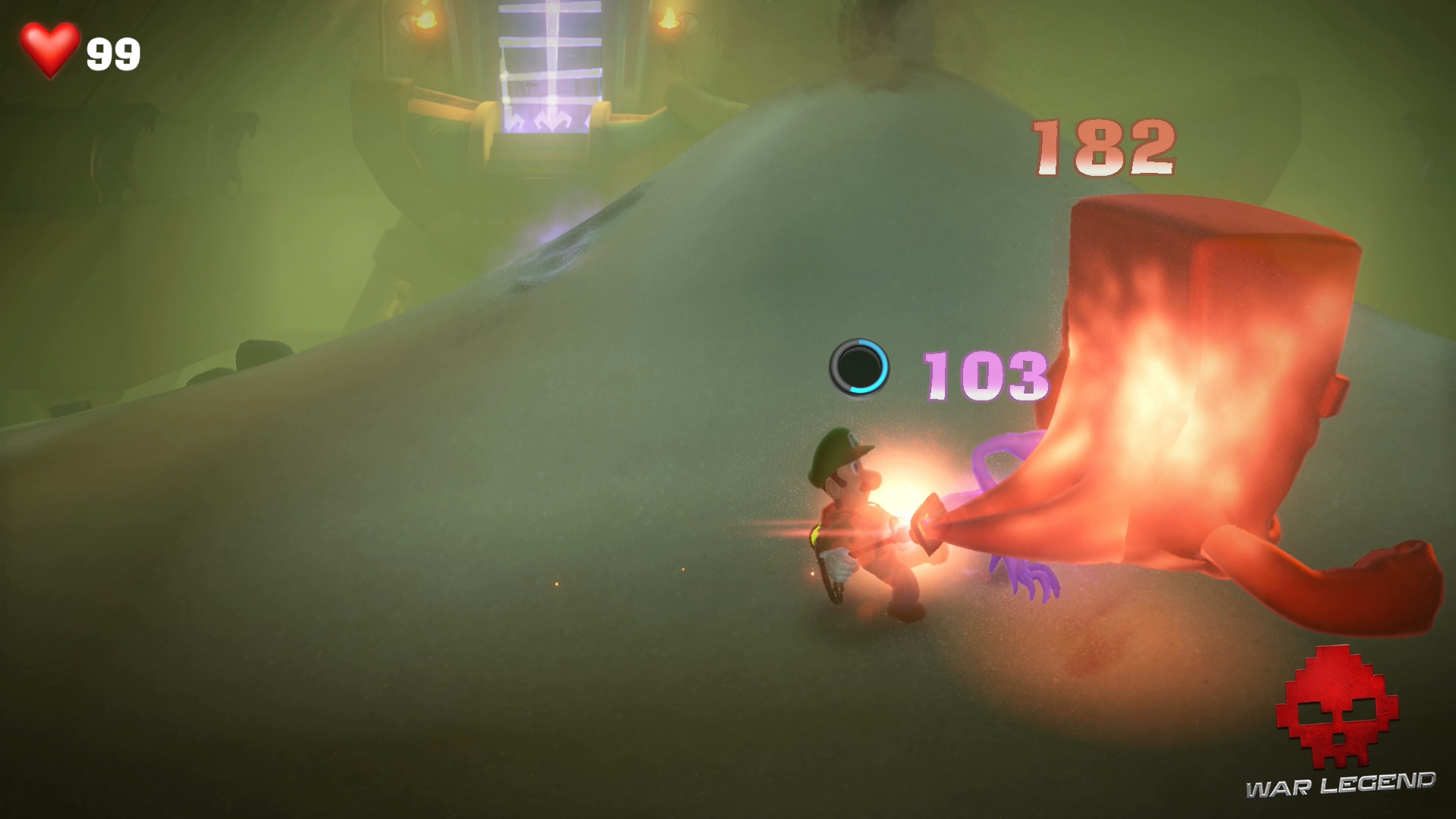 Des fantômes vous attaquent, dont des Enlaceurs. Gluigi ne sera pas de trop pour se défendre.