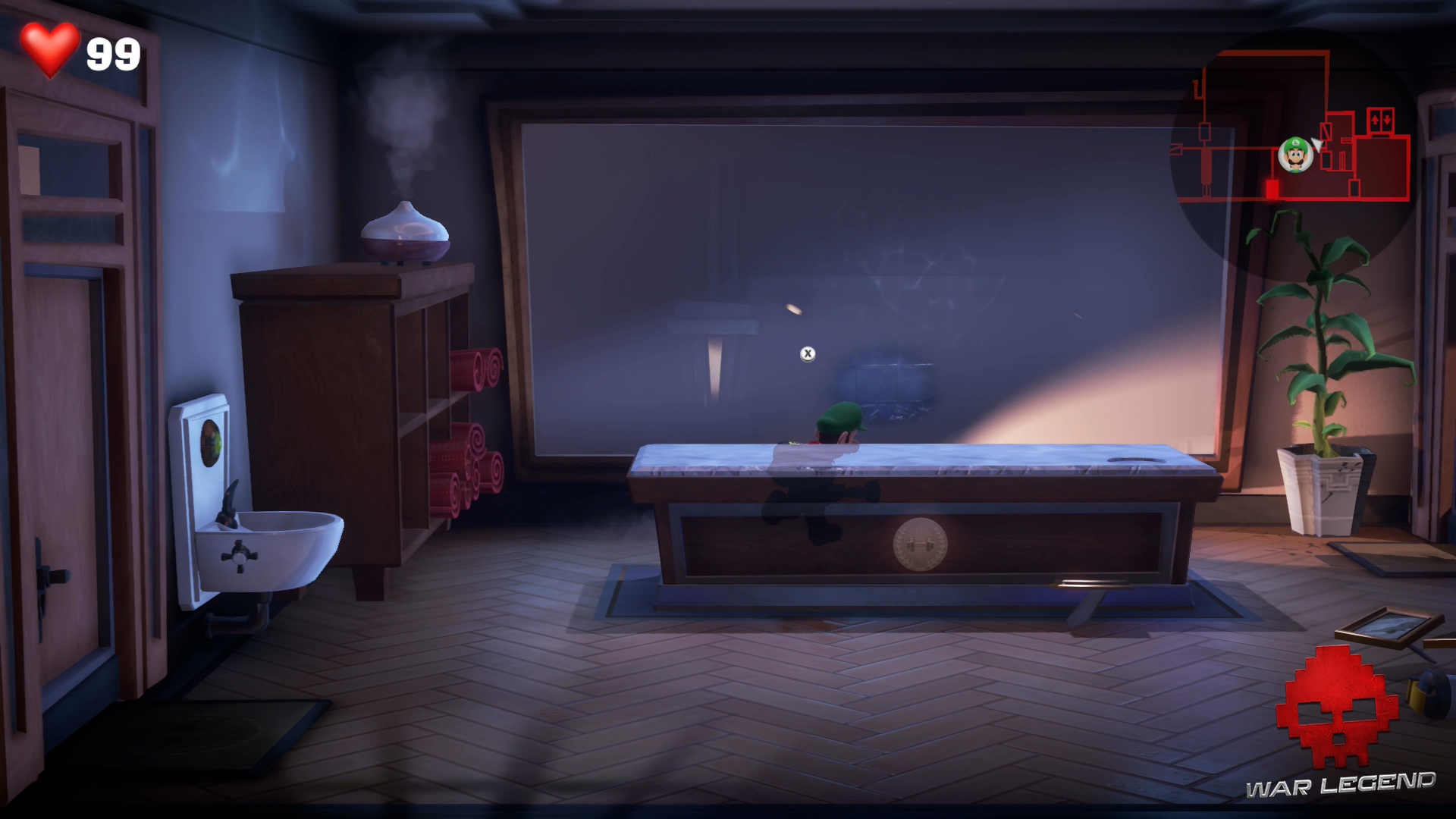 Cachez ensuite Gluigi derrière le pilier tant que Walter est inconscient. Étourdissez-le une deuxième fois avec Luigi et envoyez Gluigi s’occuper de la valve au fond de la pièce afin de vider la piscine.