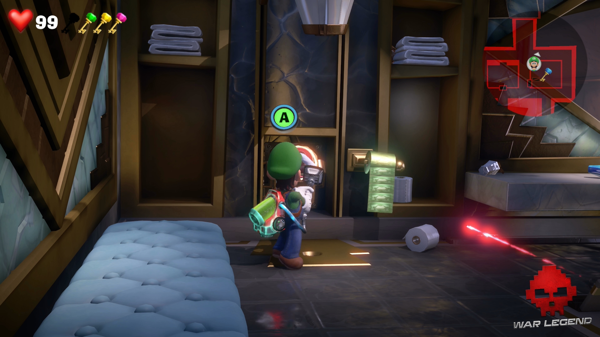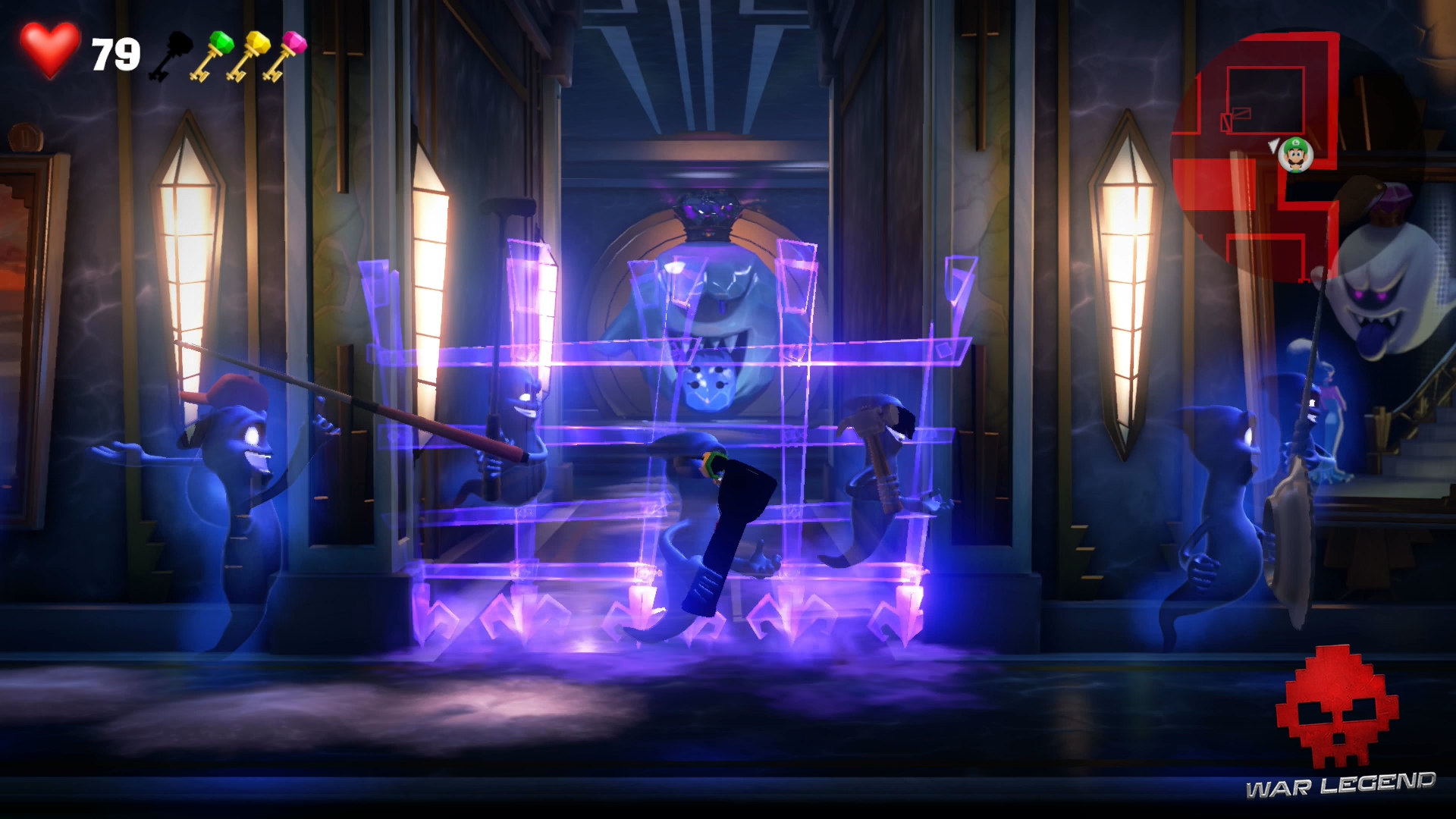 Une fois tranquille, dirigez-vous vers le coffre-fort avec la porte en forme du Roi Boo. Placez les clés.