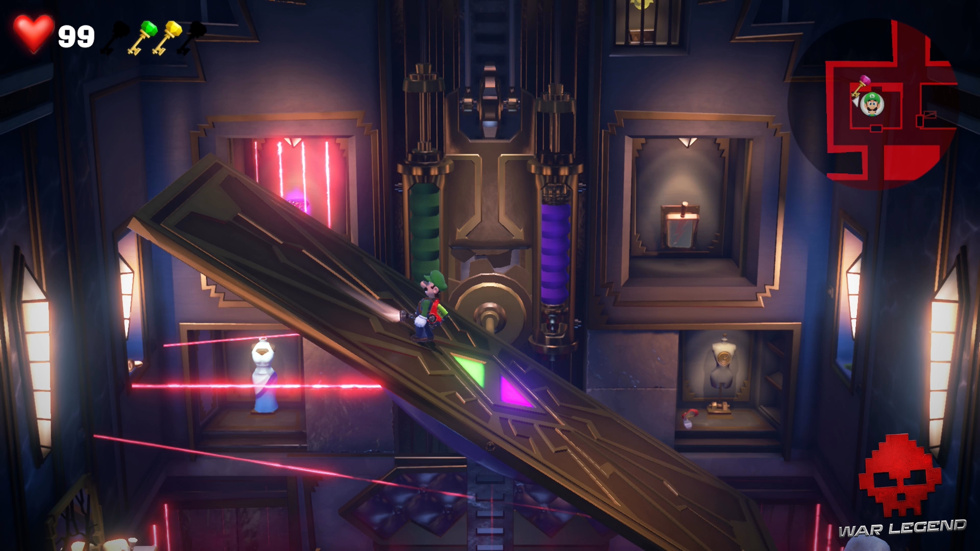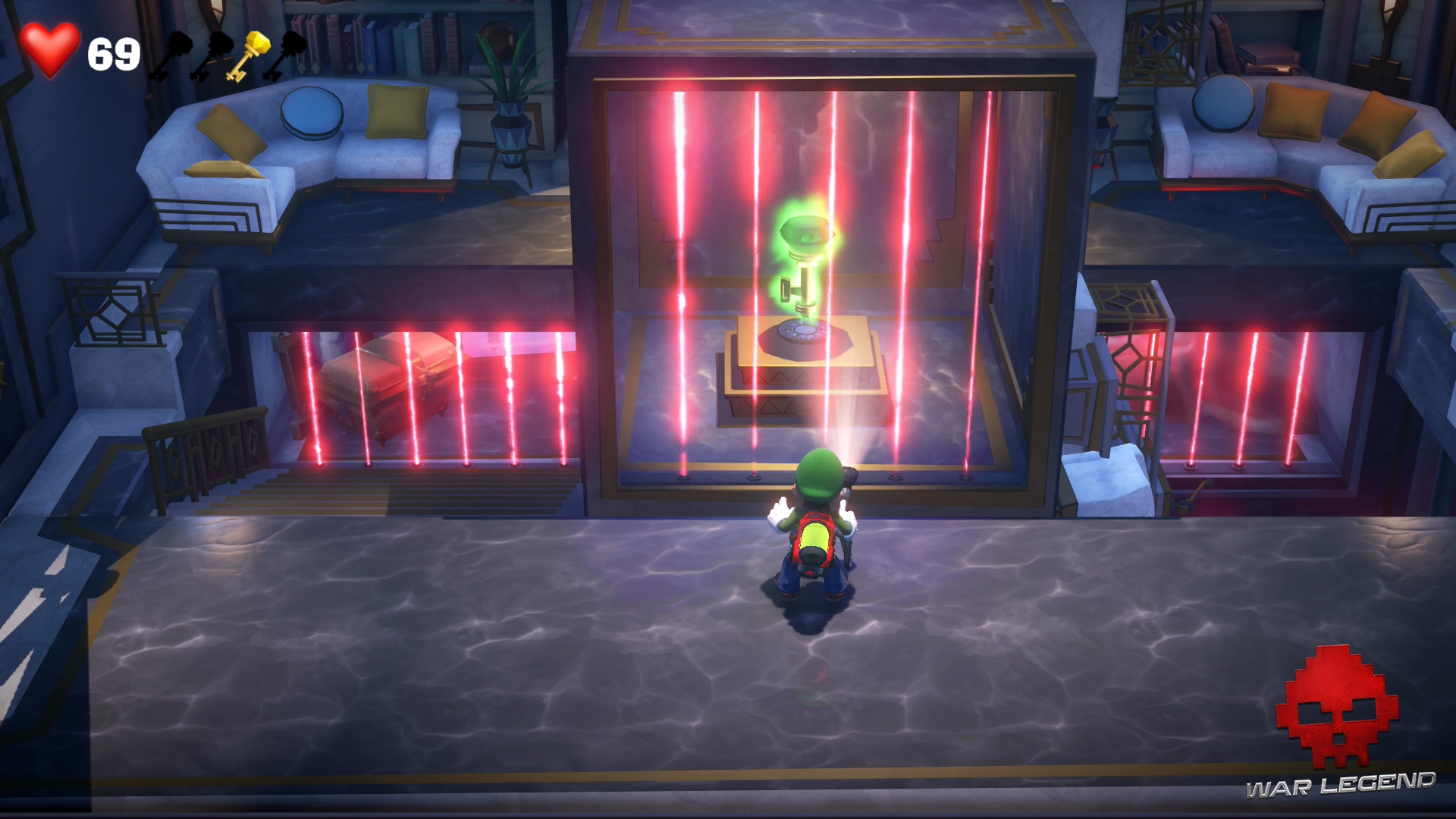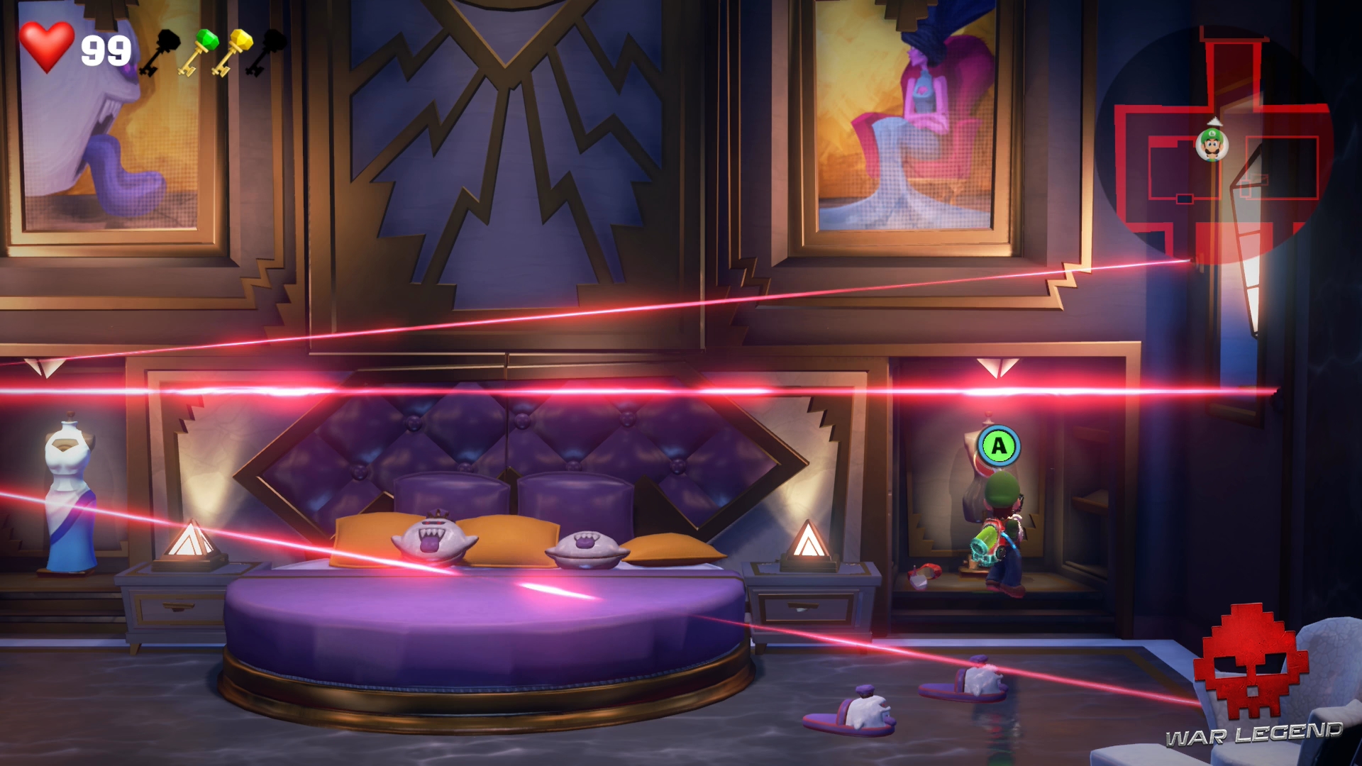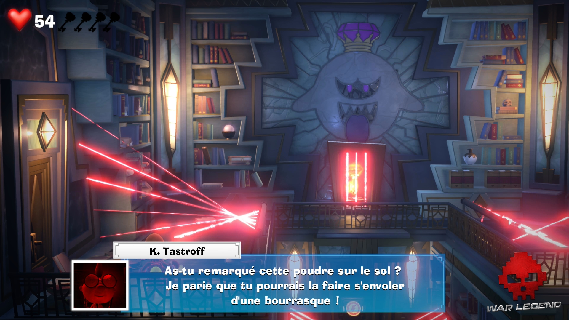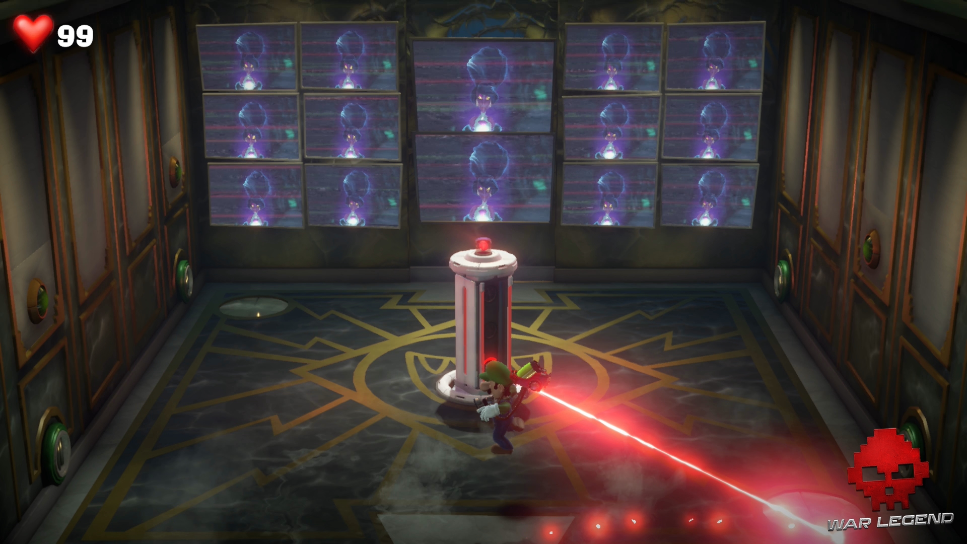 De son côté, Luigi doit esquiver les attaques du boss. Quand Ambre Brusquade plante son miroir dans le sol, il est temps de contre-attaquer avec le Spectroflash, mais il est possiblement risqué de drainer ses points de vie si des murs laser sont encore actifs. N’hésitez pas à lâcher prise si nécessaire.
