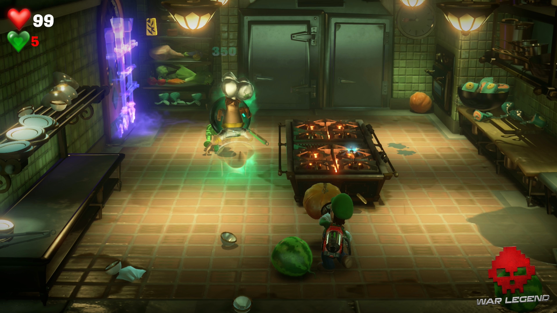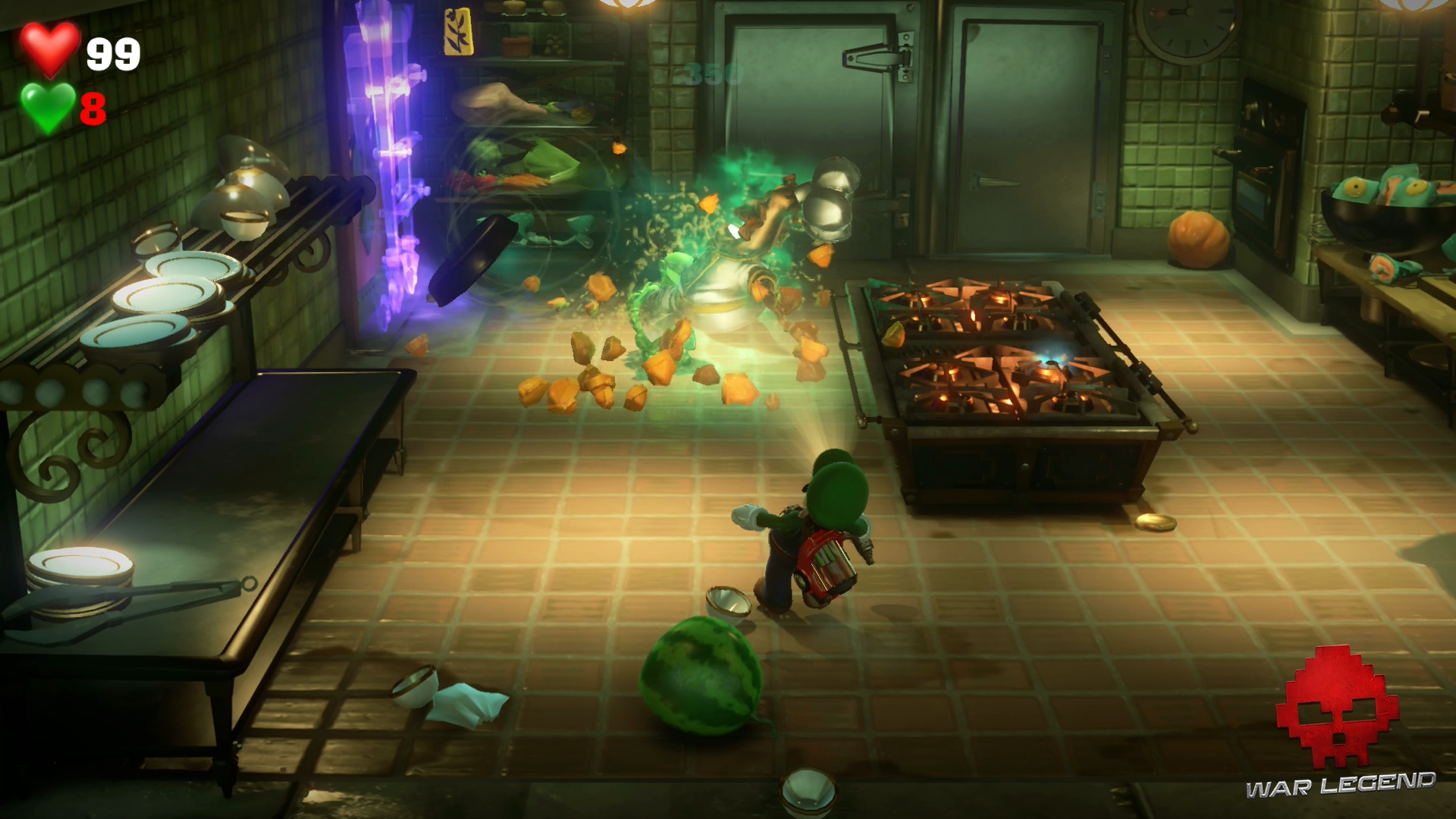 Votre aspirateur est tellement puissant qu’il peut être utilisé en tant que flashball (les CRS en sont jaloux). Pour battre le chef Krem Brûlé, aspirez une citrouille (ou une pastèque), visez la poêle du chef cuistot et soufflez avec l’Ectoblast pour propulser le cucurbitacée.