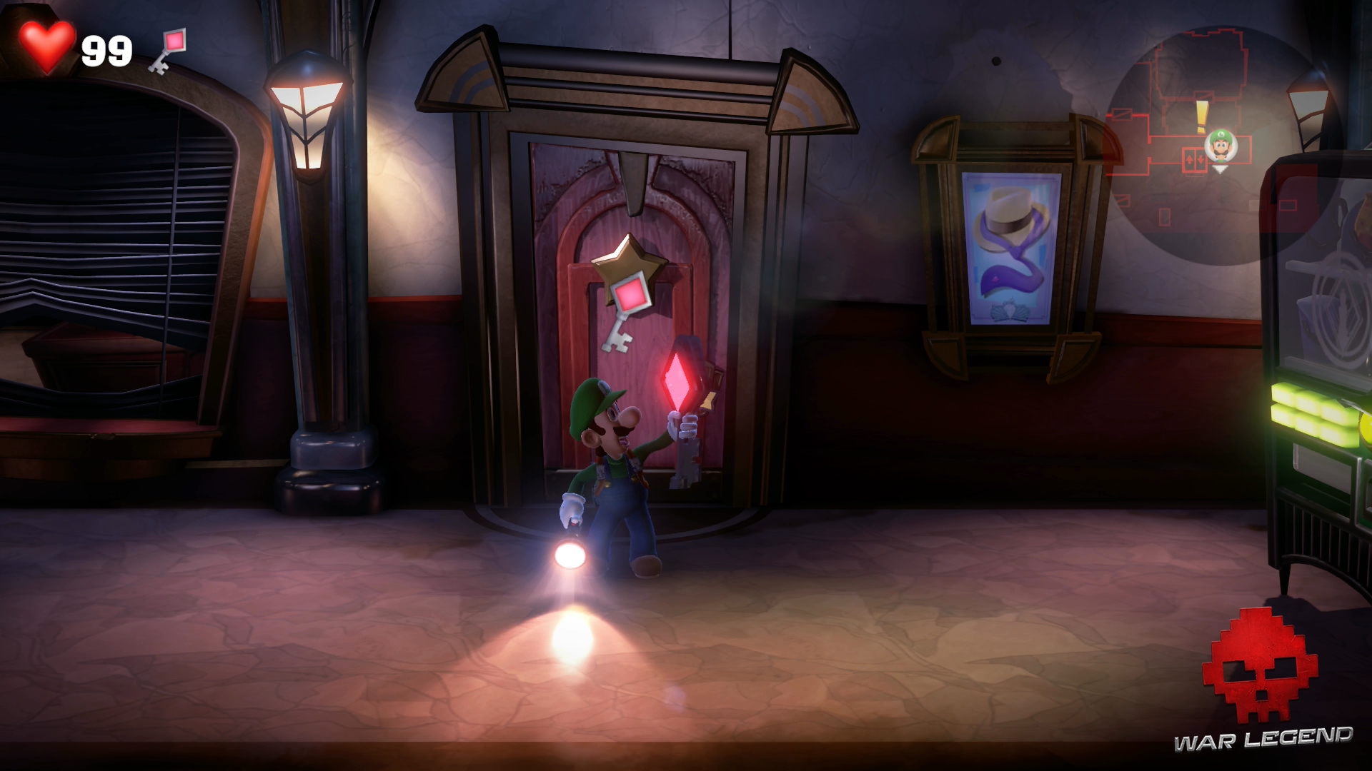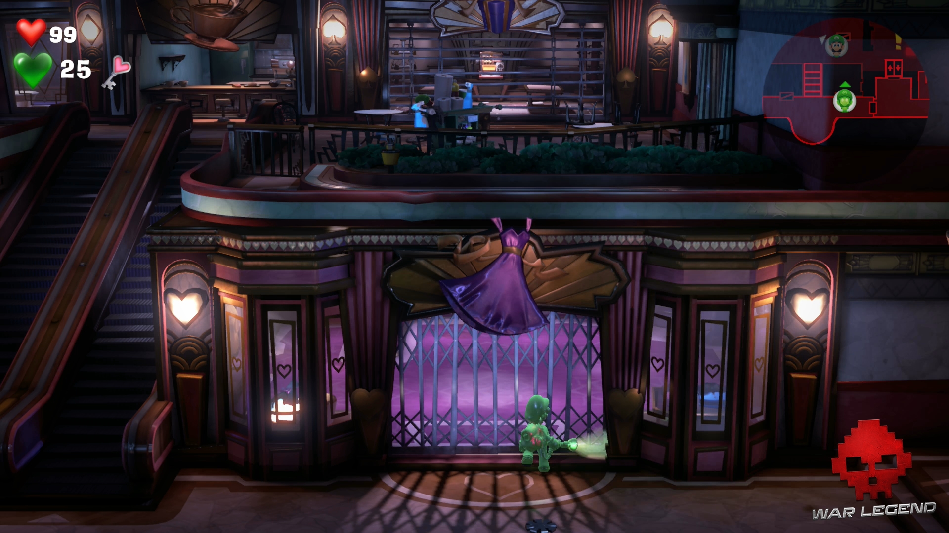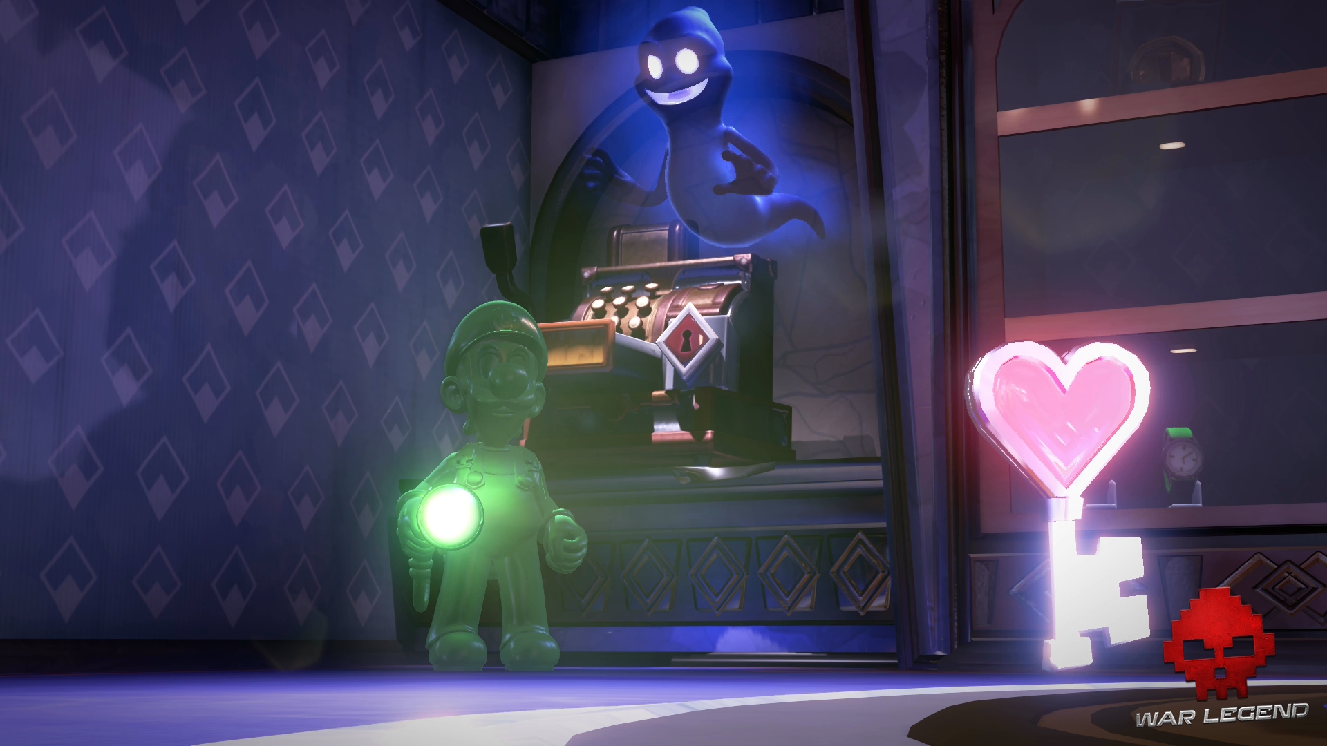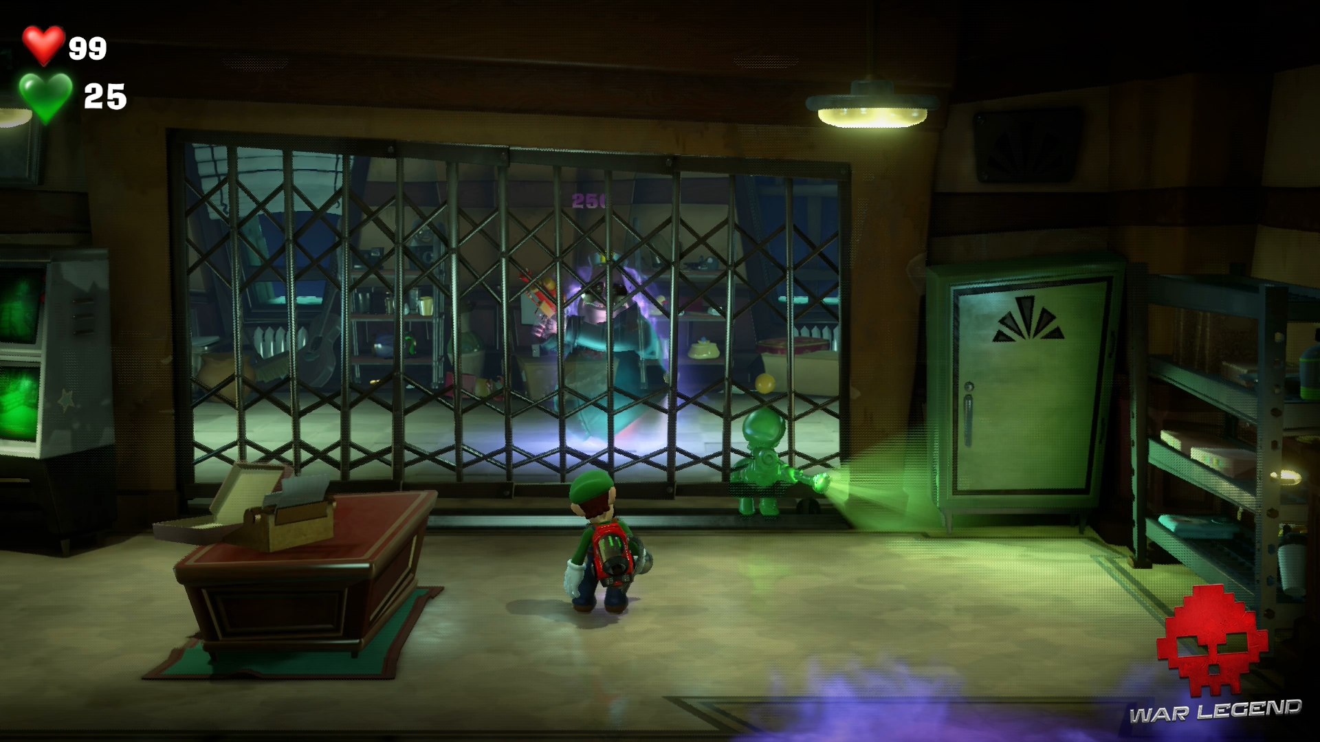 Une fois dans la boutique, vous vous rendez compte qu’il n’y a pas de caisse enregistreuse. Si vous avez l’œil, vous verrez qu’il y a une ombre projetée sur le comptoir. Utilisez le Révéloscope et aspirez les particules Boo. Utilisez la clé et voilà la clé du Bureau de la sécurité.